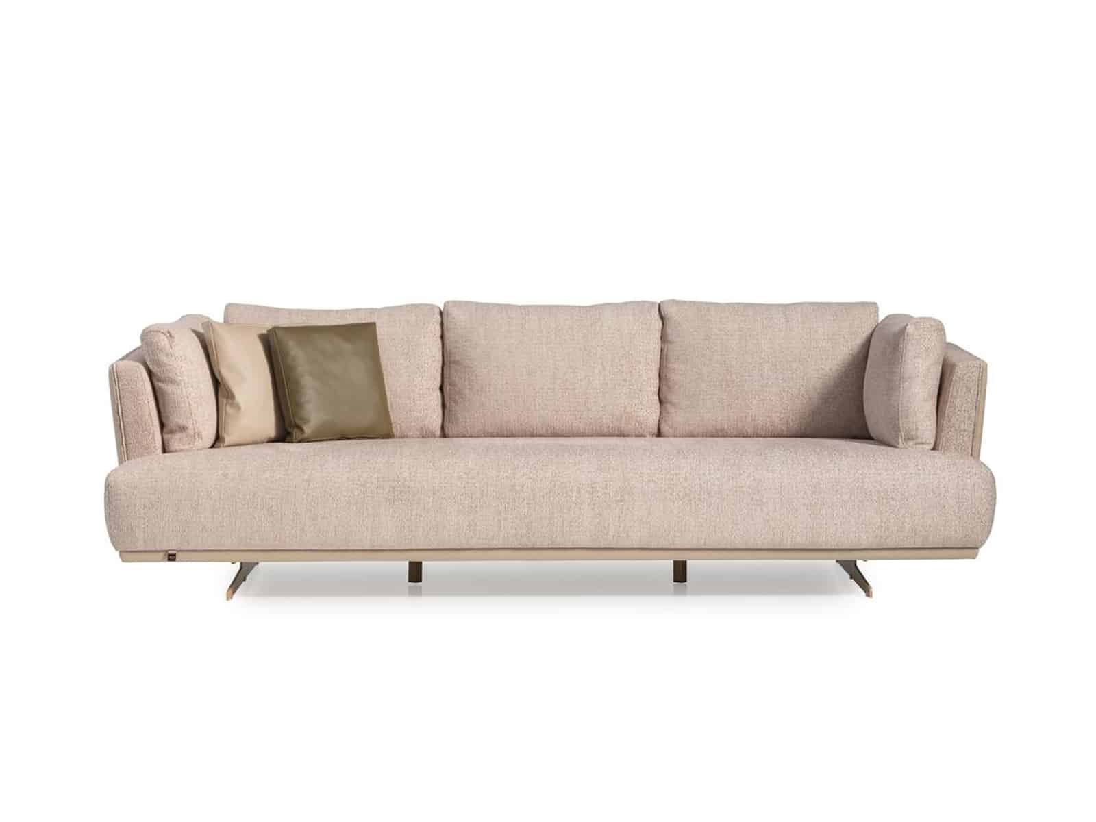 Lima 4 személyes kanapé bézs szövettel, szálcsiszolt arany lábbal