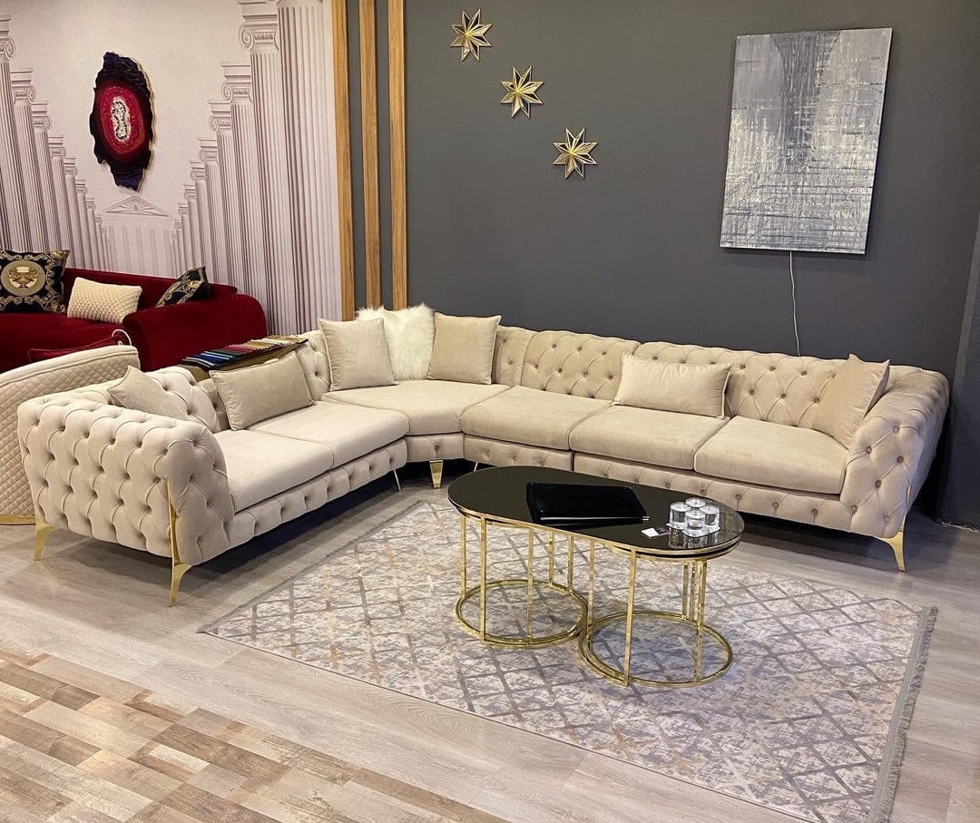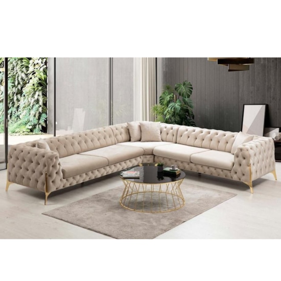Kezdőlap Webshop Bútorok Fotel, kanapé, franciaágy Kanapé My Marina sarokgarnitúra – bézs & arany