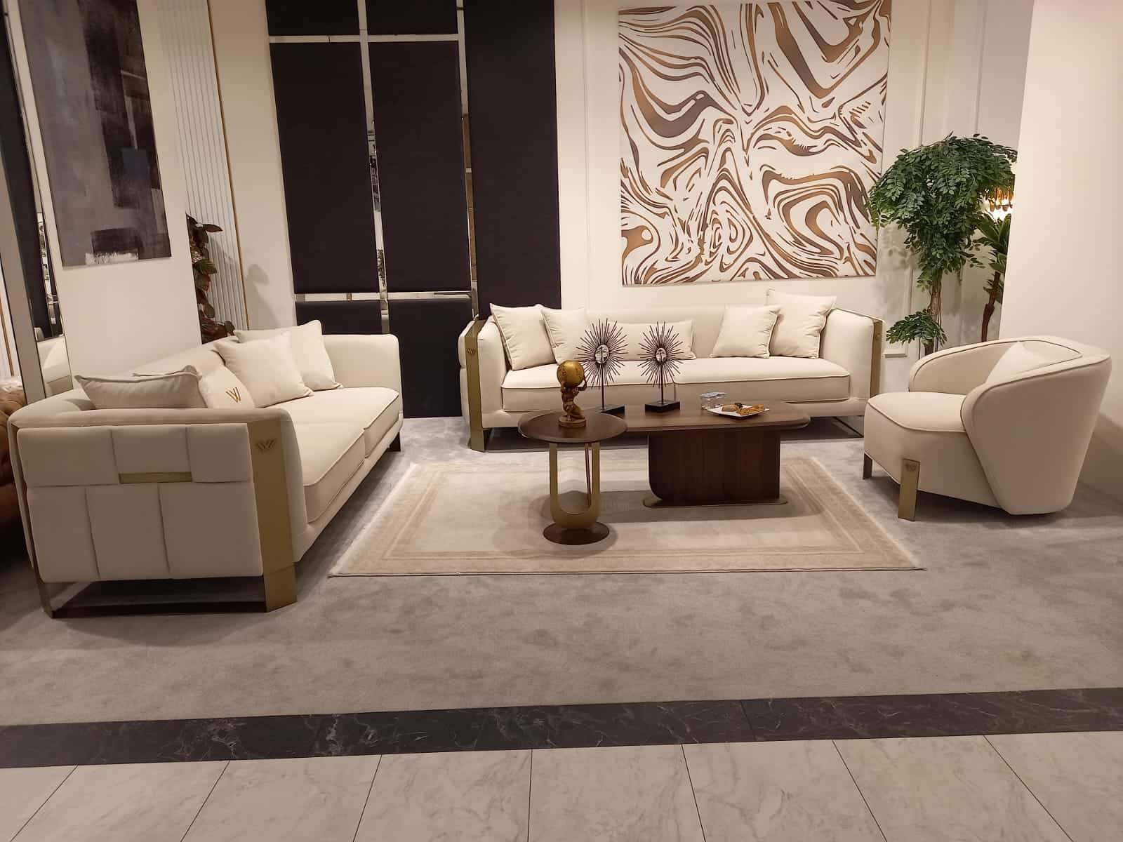 Special Panamera háromszemélyes kanapé – krém & arany KIÁLLÍTOTT