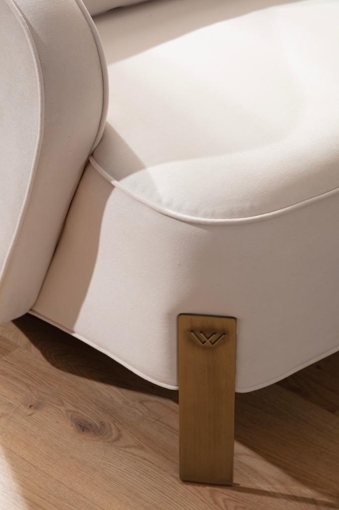 Panamera háromszemélyes kanapé – krém színű bársony arany díszítéssel.