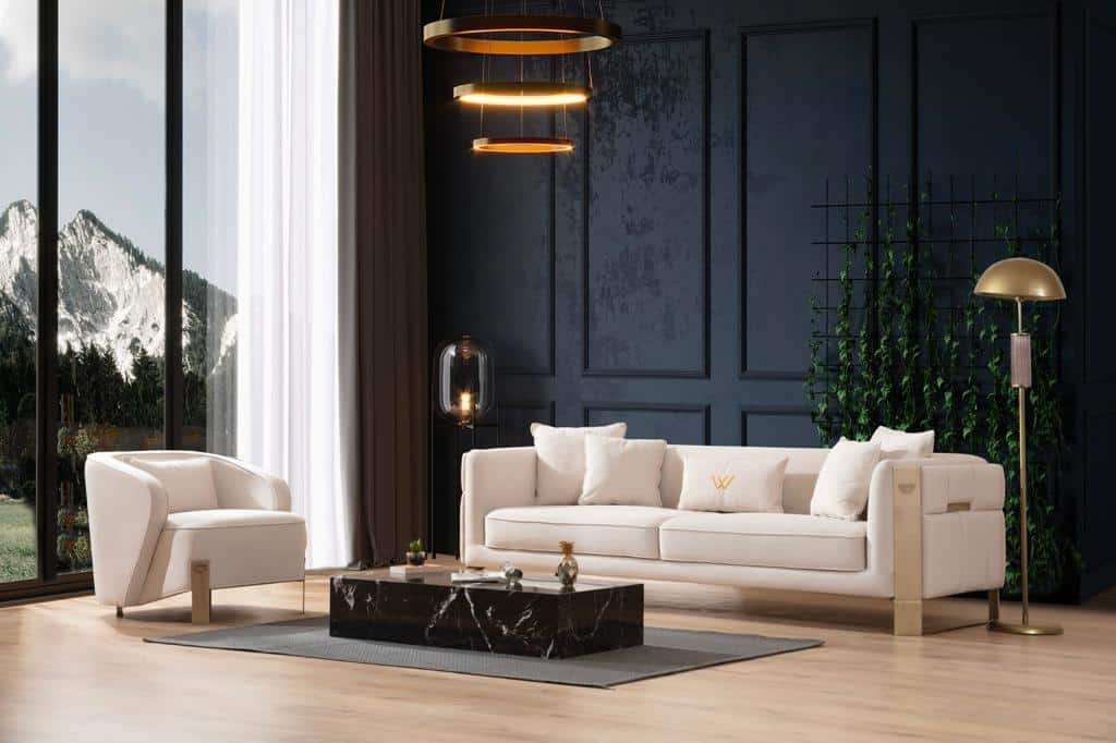 Aston kettőszemélyes kanapé – krém & arany