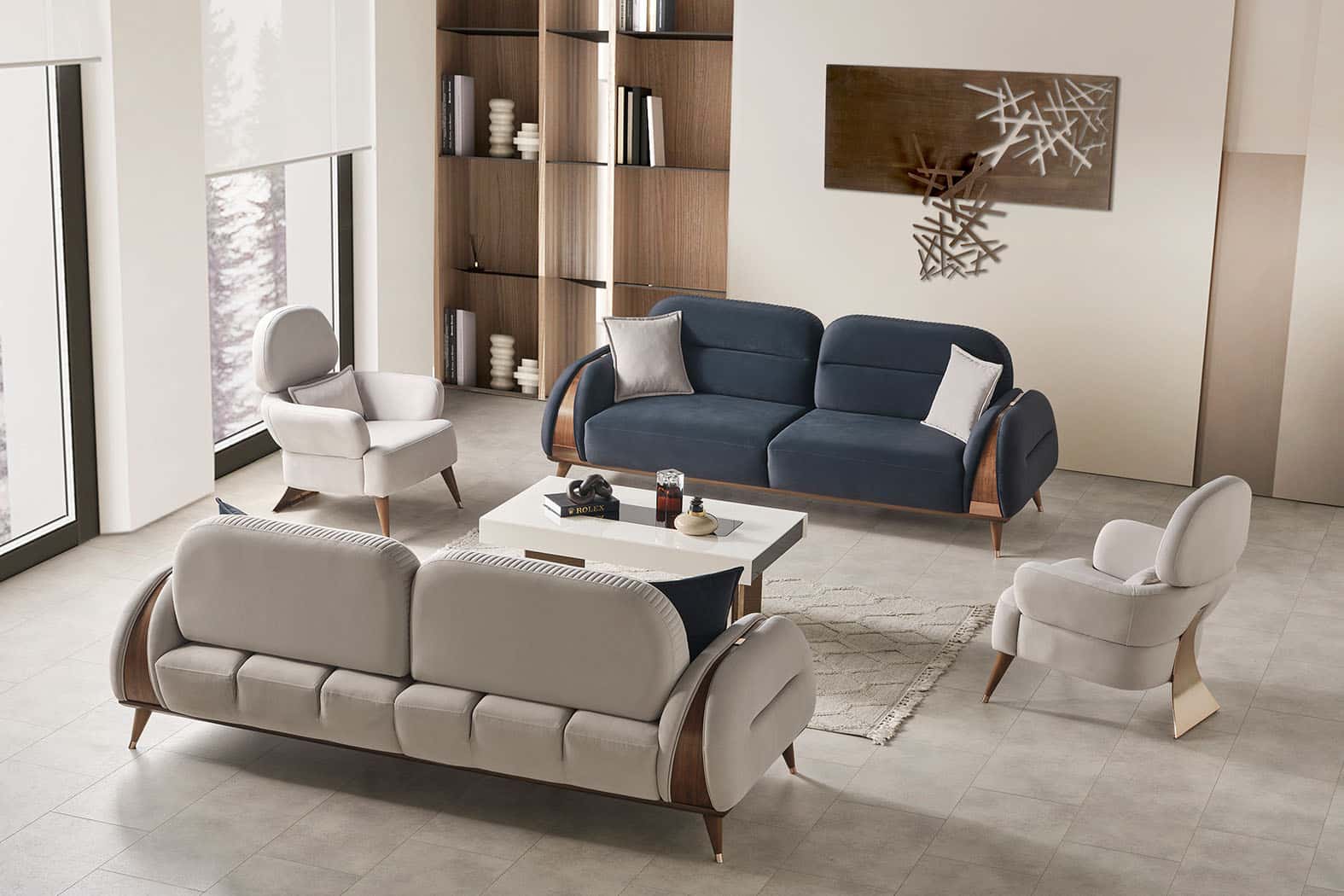 Aura dohányzóasztal – latte & pezsgő-arany