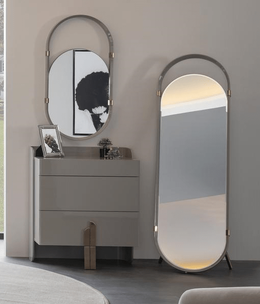Beyonce konzol/fésülködő asztal álló tükörrel – magasfényű szürke & bronz