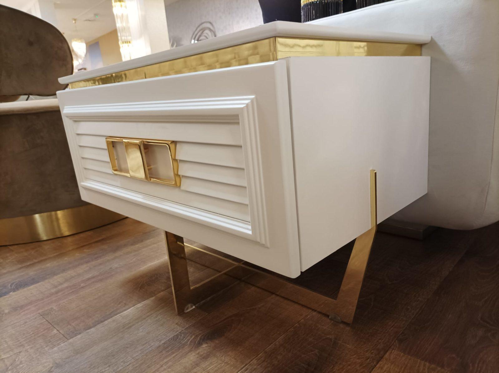 Glória éjjeliszekrény – arany & fehér