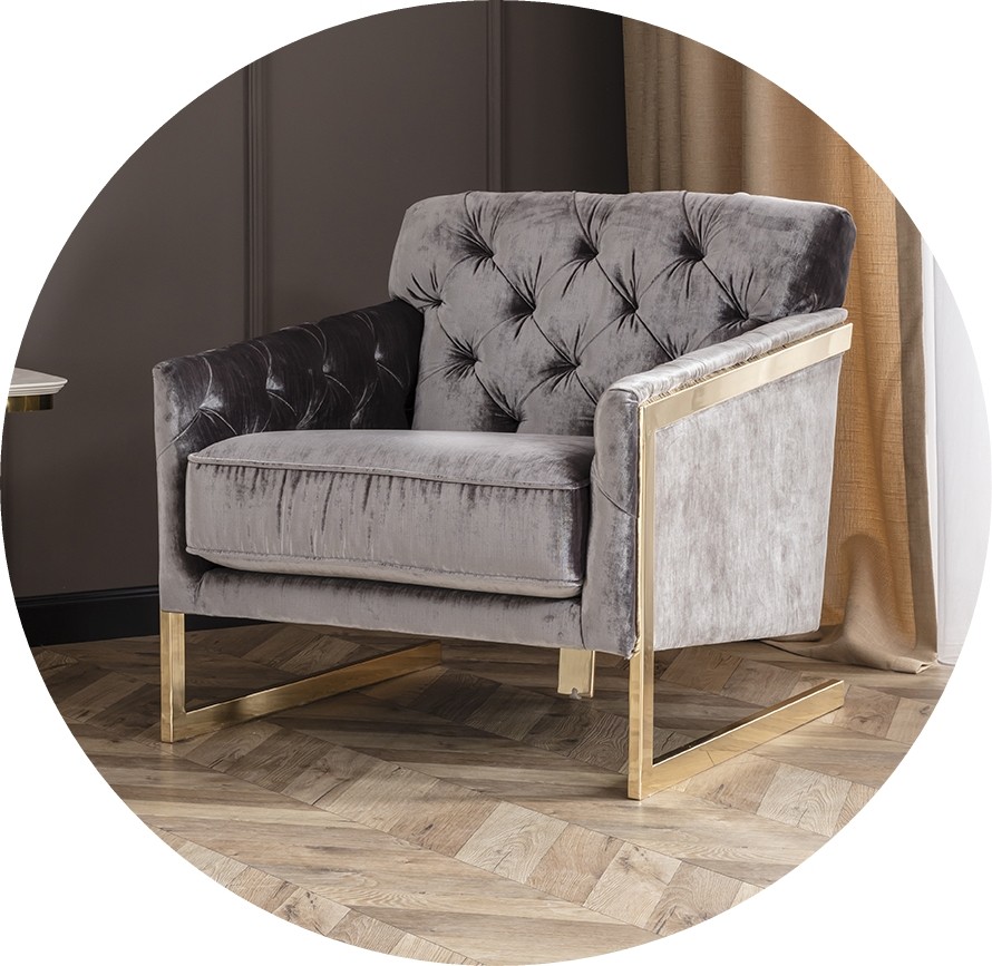 Kezdőlap Webshop Bútorok Fotel, kanapé, franciaágy Glória fotel – fényes szürke & arany láb