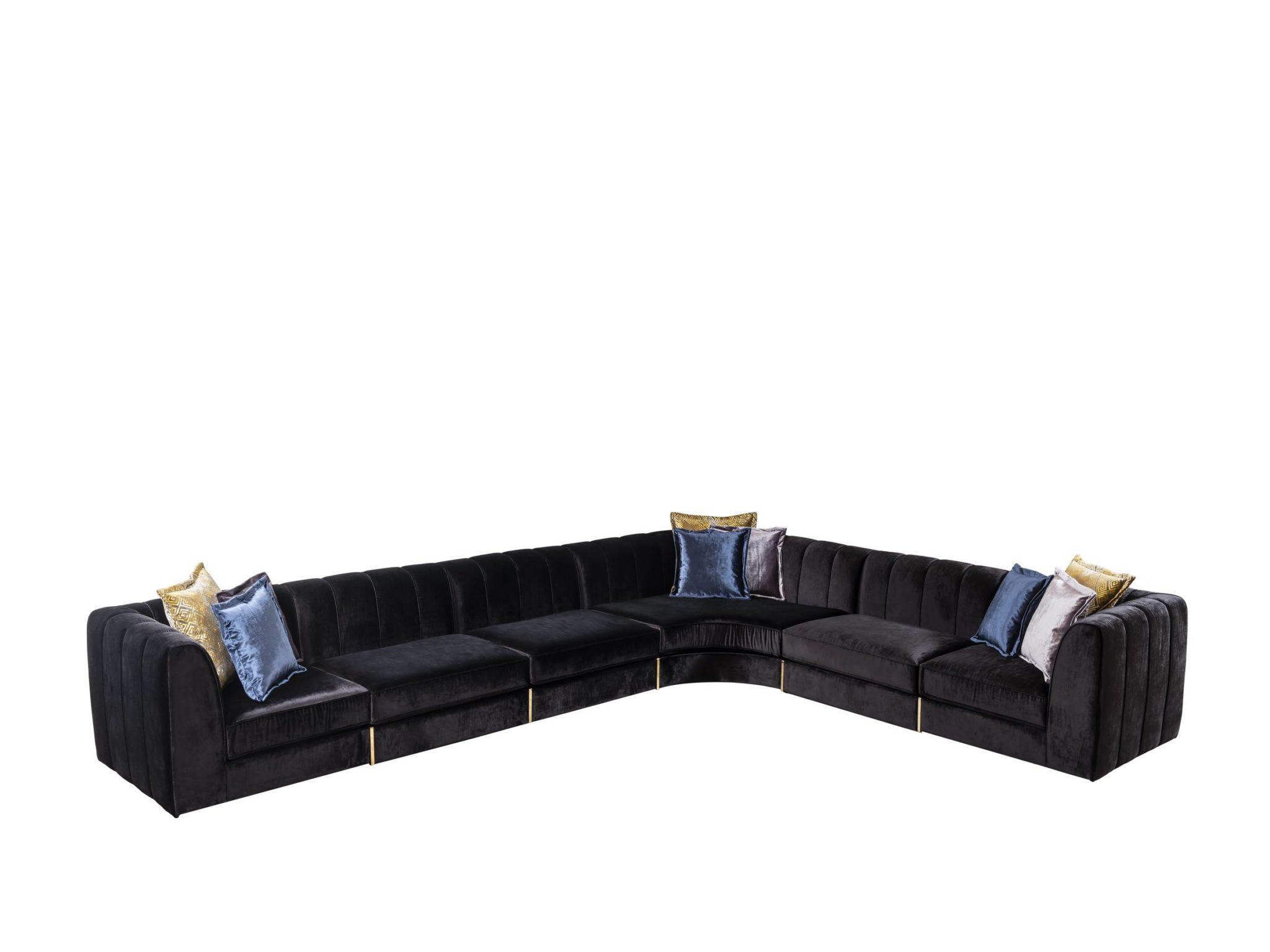 Glória ülőgarnitúra U alakú, fekete bársony