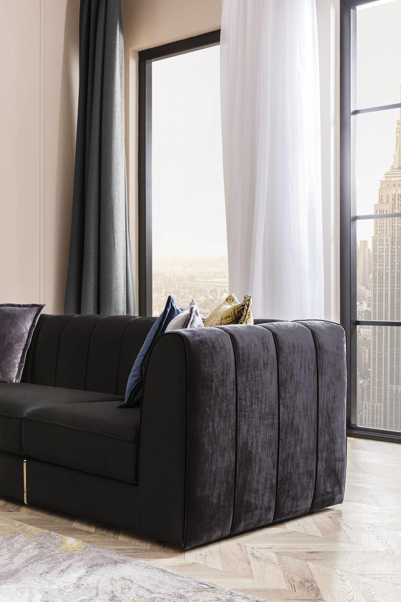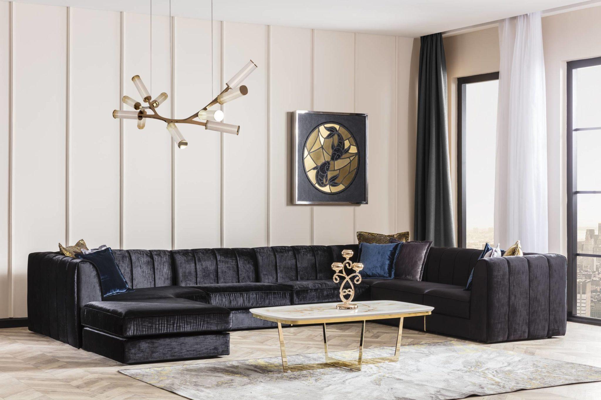 Glória ülőgarnitúra – fekete bársony & arany