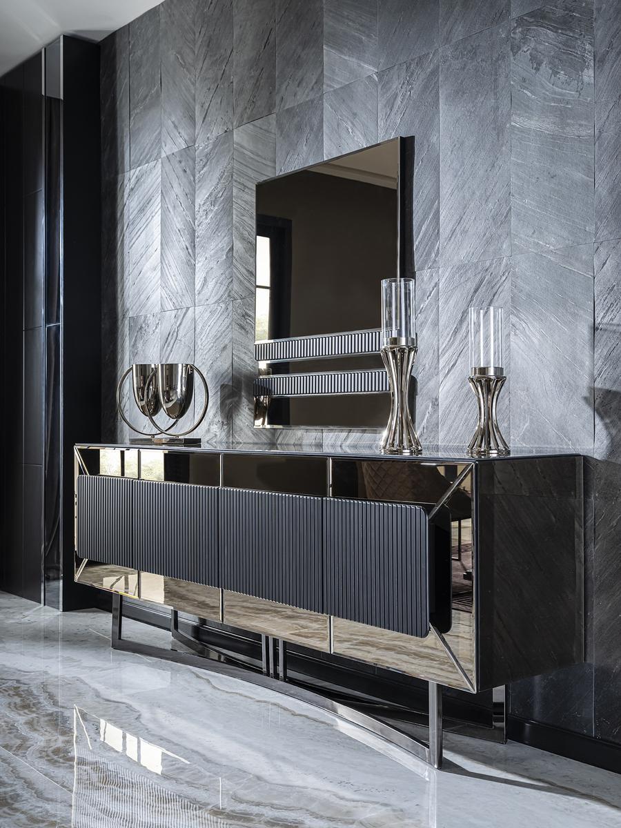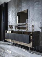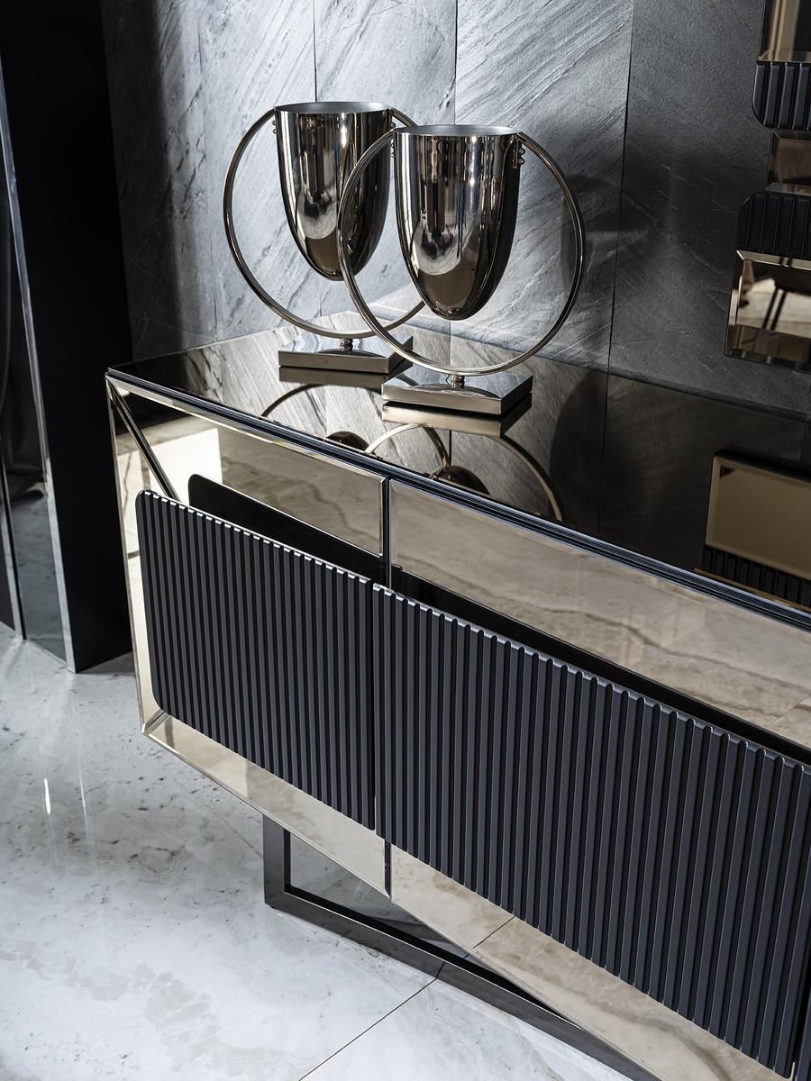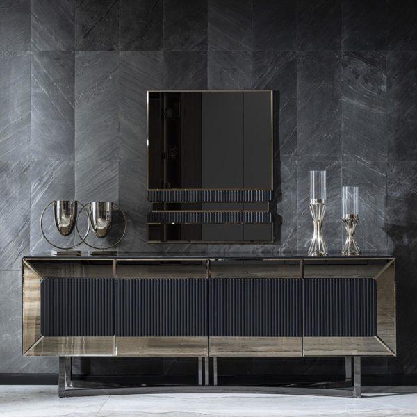 Lion  komód / tálaló – fekete & bronz & tükör.