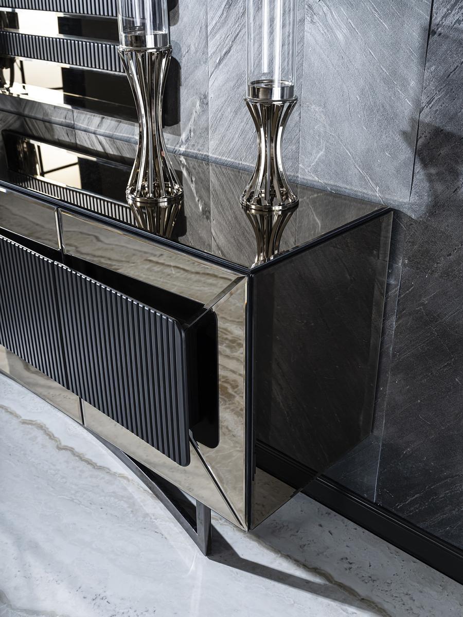 Kezdőlap Webshop Bútorok Szekrény, komód Komód Lion komód / tálaló szekrény – fekete & tükör