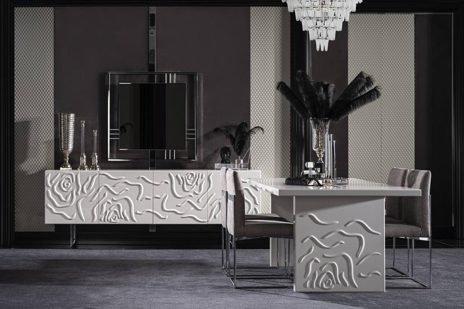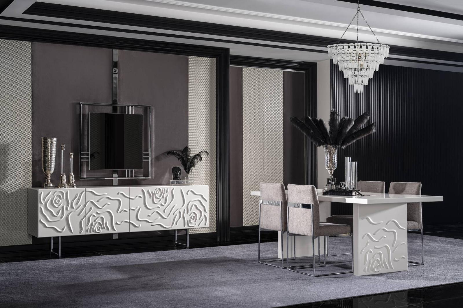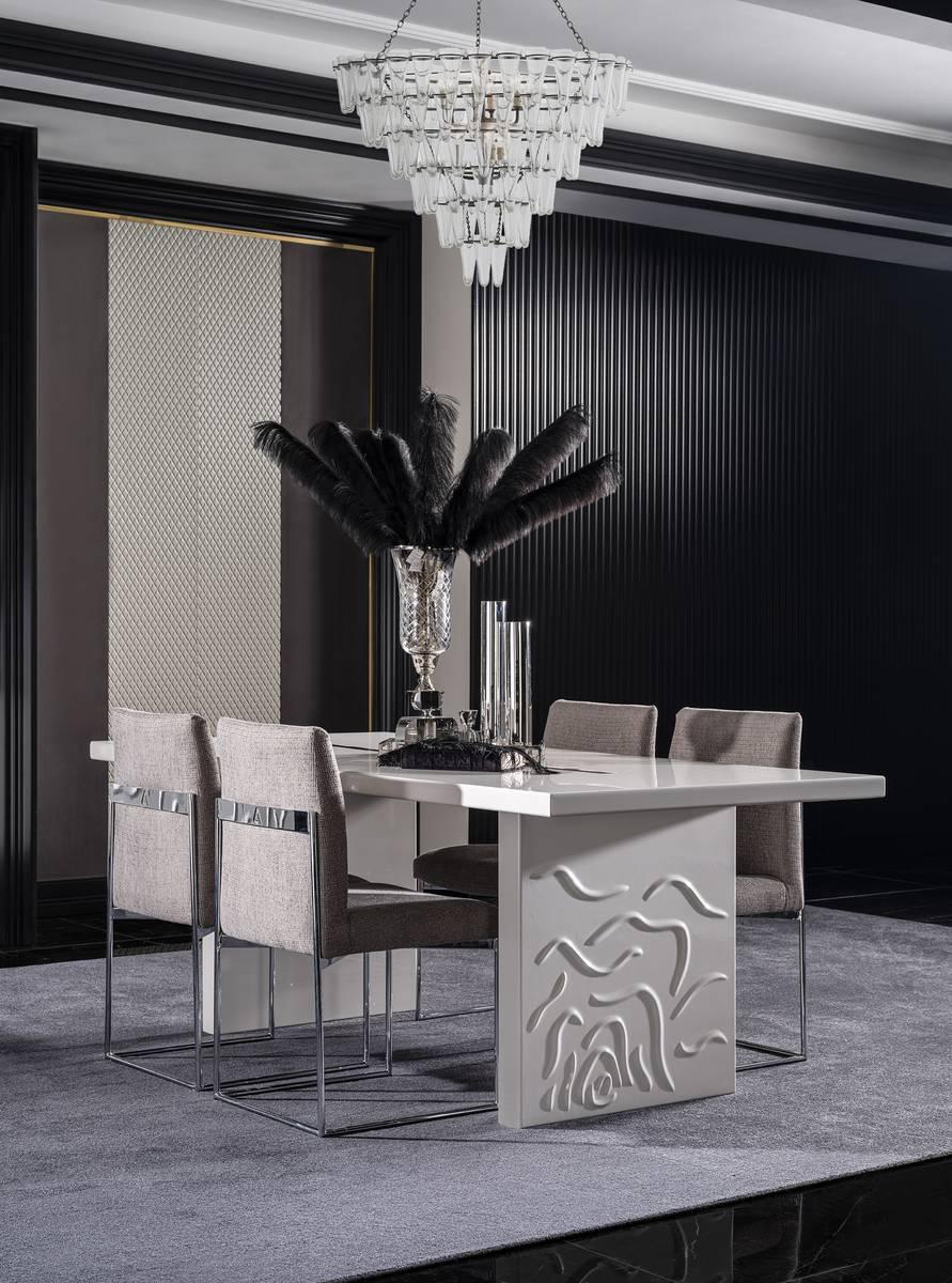 Parma étkezőasztal – magasfényű fehér – hullám mintával dekorálva.