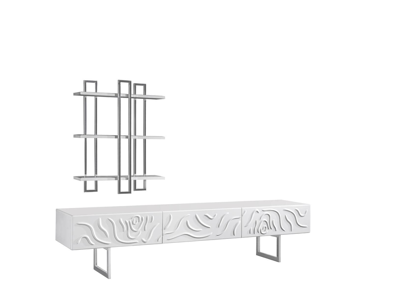 Parma Tv szekrény – magasfényű fehér & króm . Polc nem tartozék, külön rendelhető.