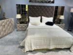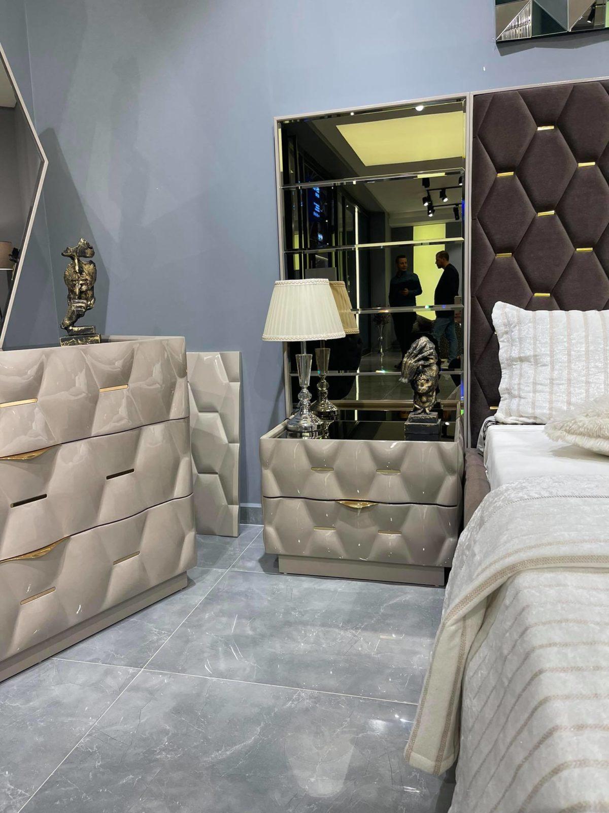 Royal éjjeliszekrény magasfényű krém felület  & arany & tükör asztallappal.