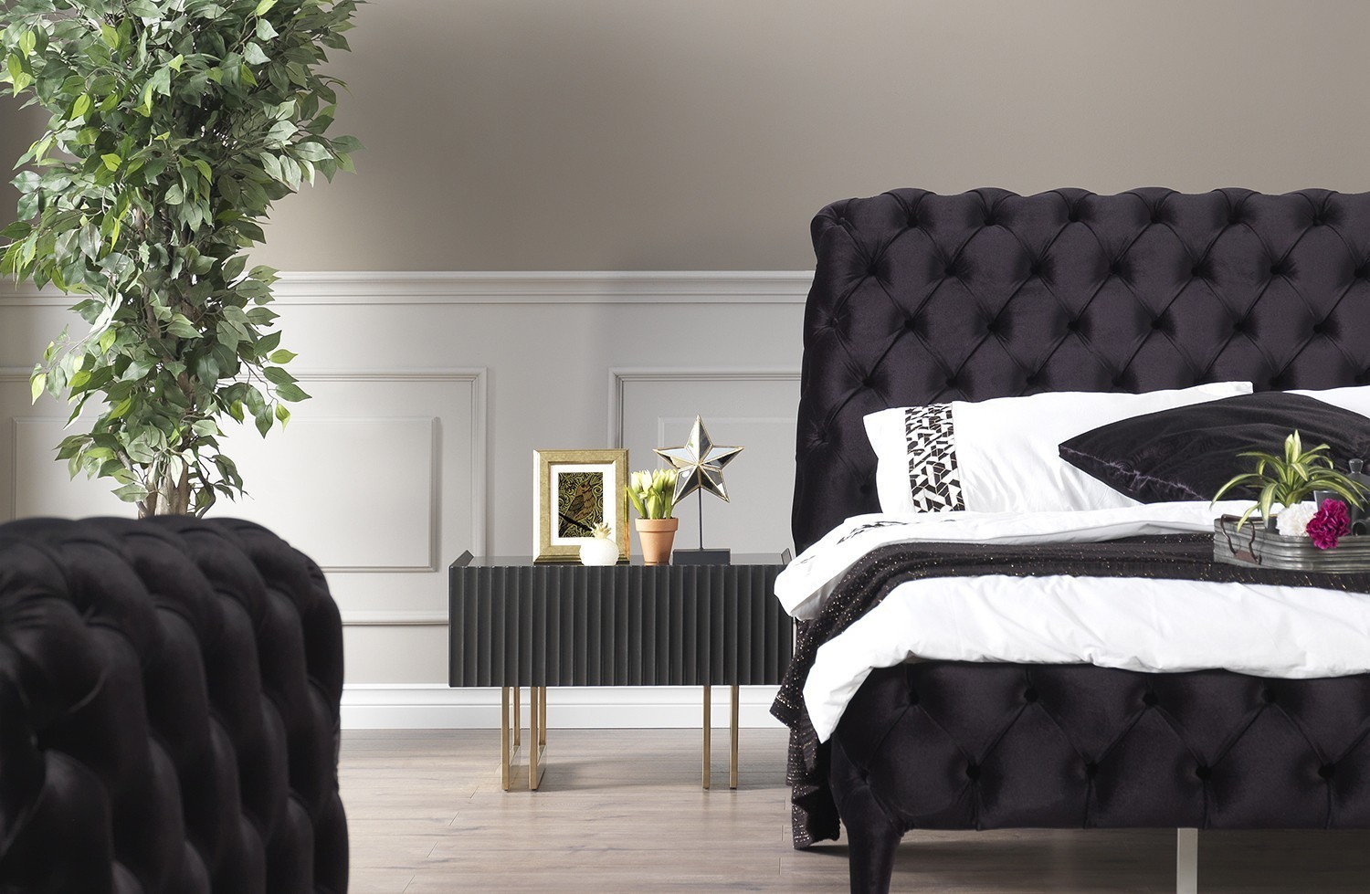 Senfoni éjjeliszekrény – arany & fekete