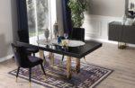 Kezdőlap Webshop Bútorok Étkezőasztal, étkezőszék Senfoni étkezőasztal – arany & fekete, 200 cm