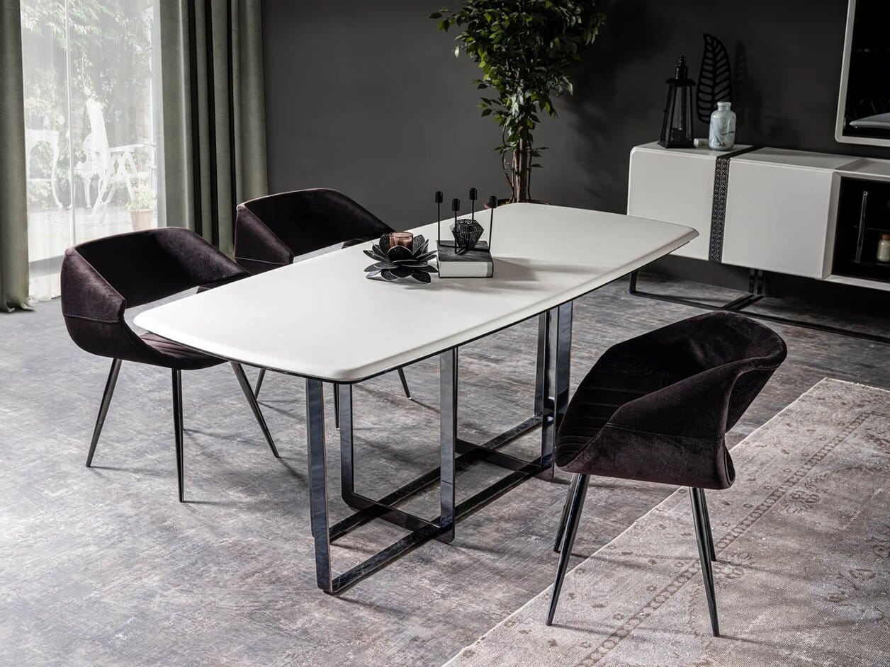 Asus étkezőasztal – fehér & króm & tükör, 211 cm