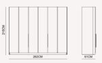 Méretek (szélesség x magasság x mélység): 262 x 215 x 61 cm