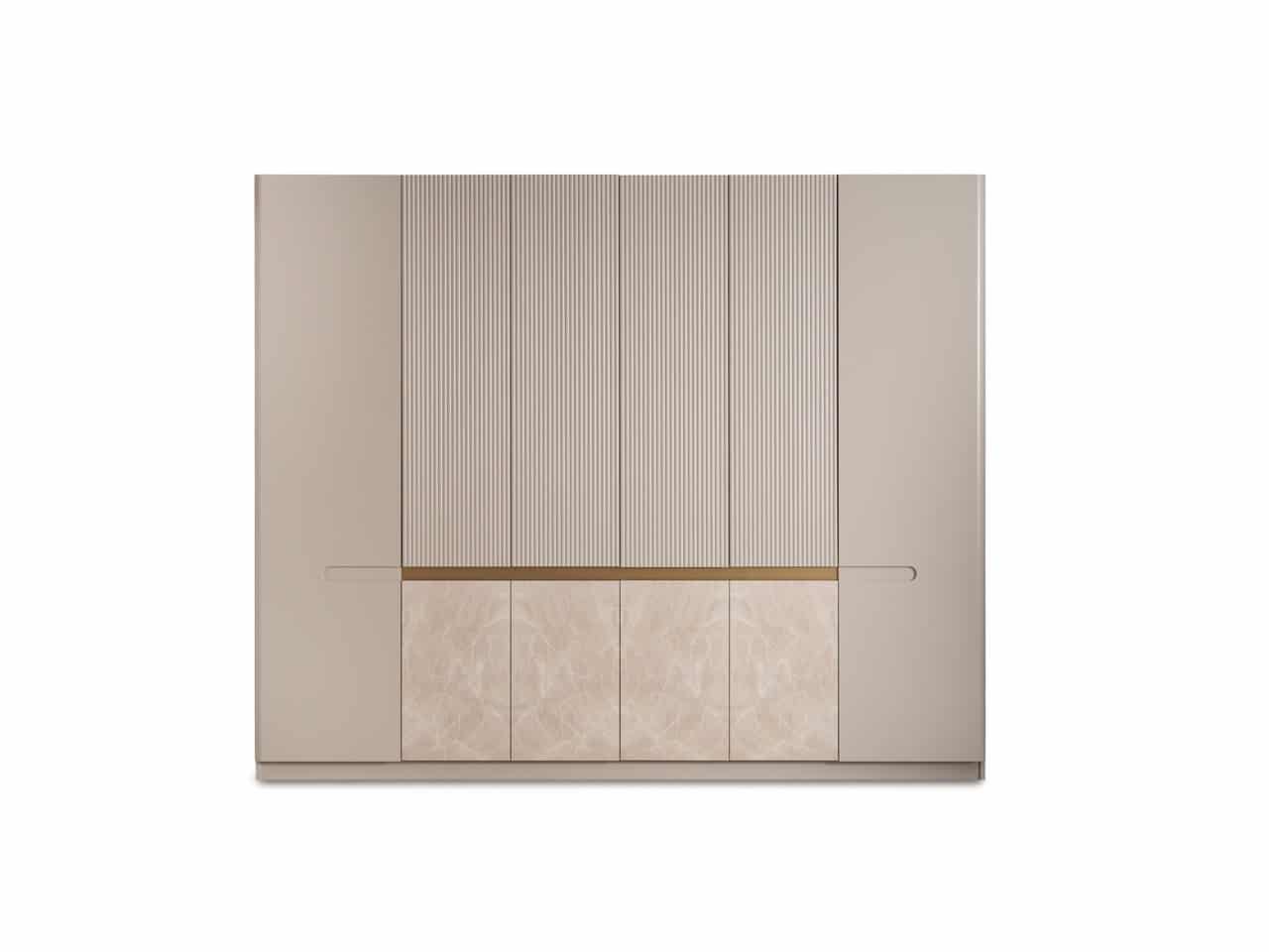 Porto gardróbszekrény – hat ajtós. Bézs, szálcsiszolt arany berakással, mintázott bézs díszítéssel.