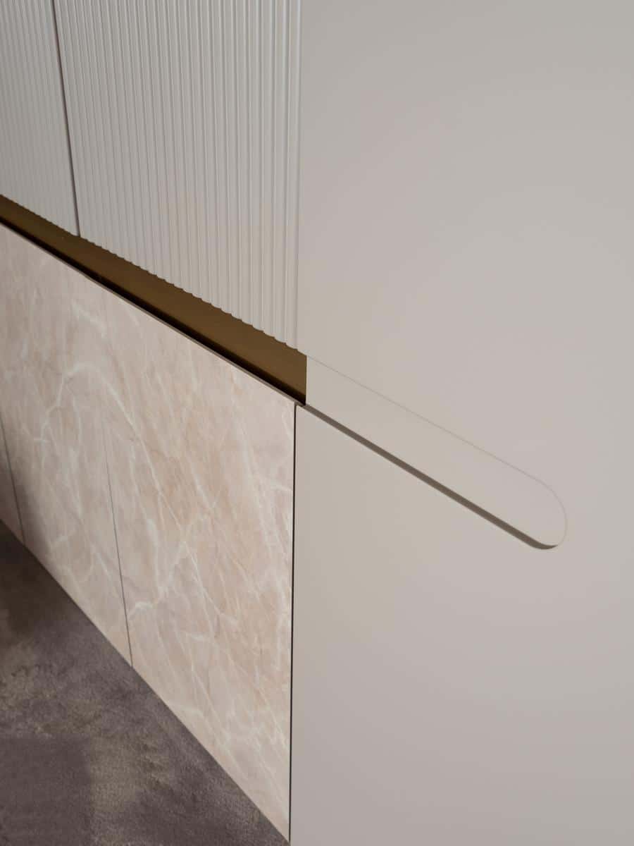 Porto gardróbszekrény, bézs, szálcsiszolt arany berakással