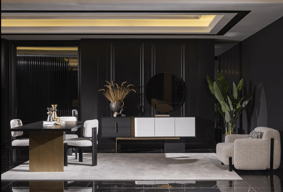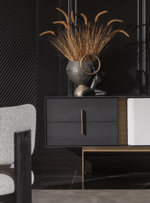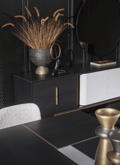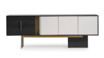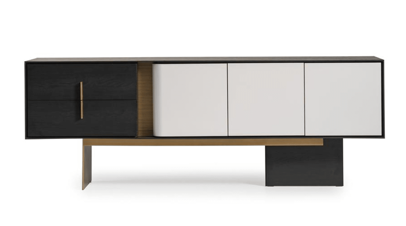 Etro tálalószekrény, fekete – fehér, szálcsiszolt arany