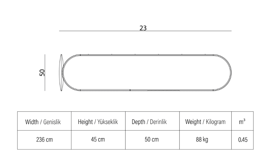 Szélesség: 236 cm