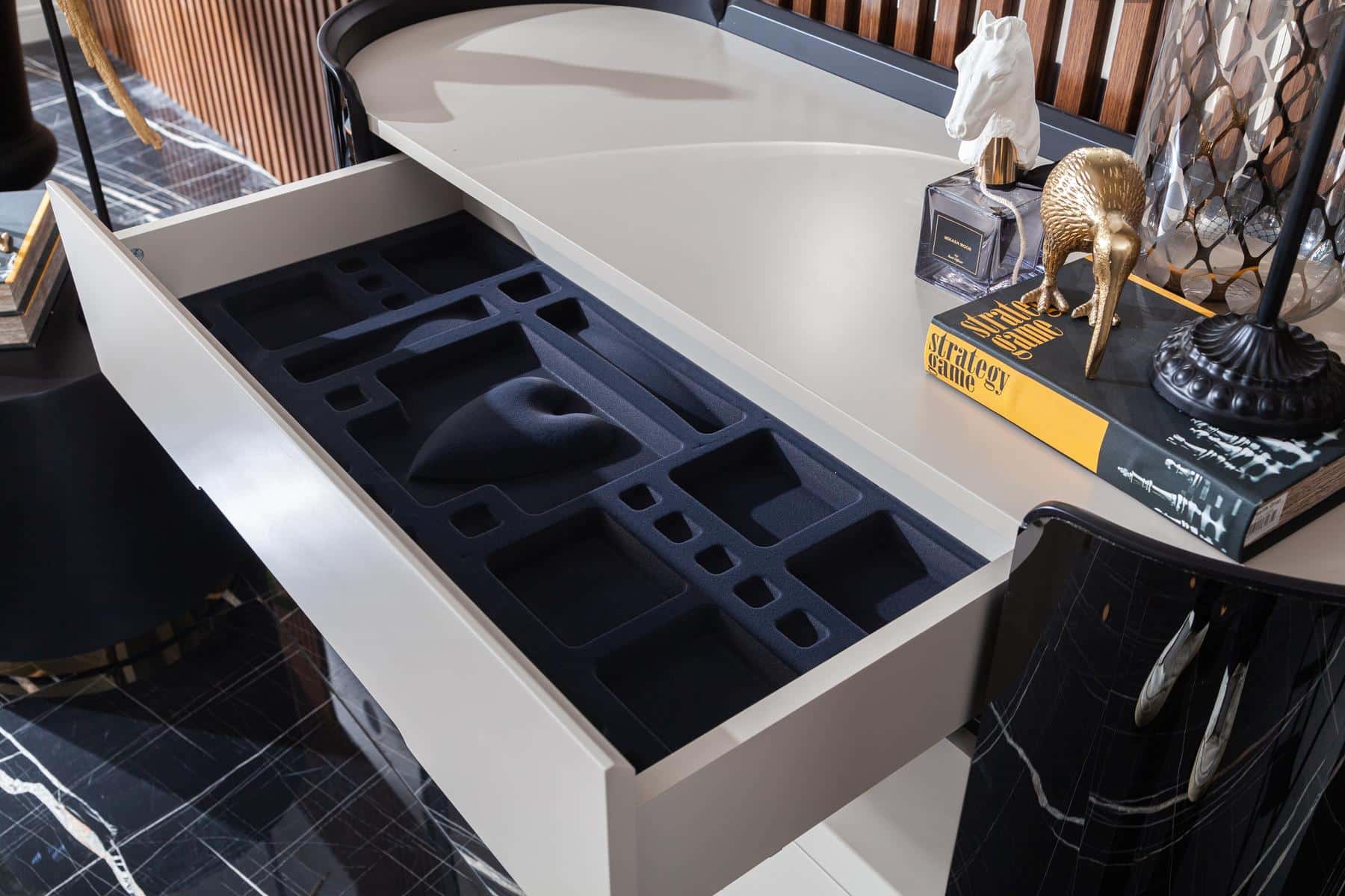 Octo fésülködő szekrény / konzol fekete & arany & krém színben.