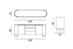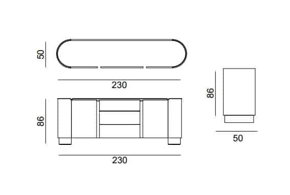 Méret : 230 cm hosszú, 86 cm magas, ,50 cm mély