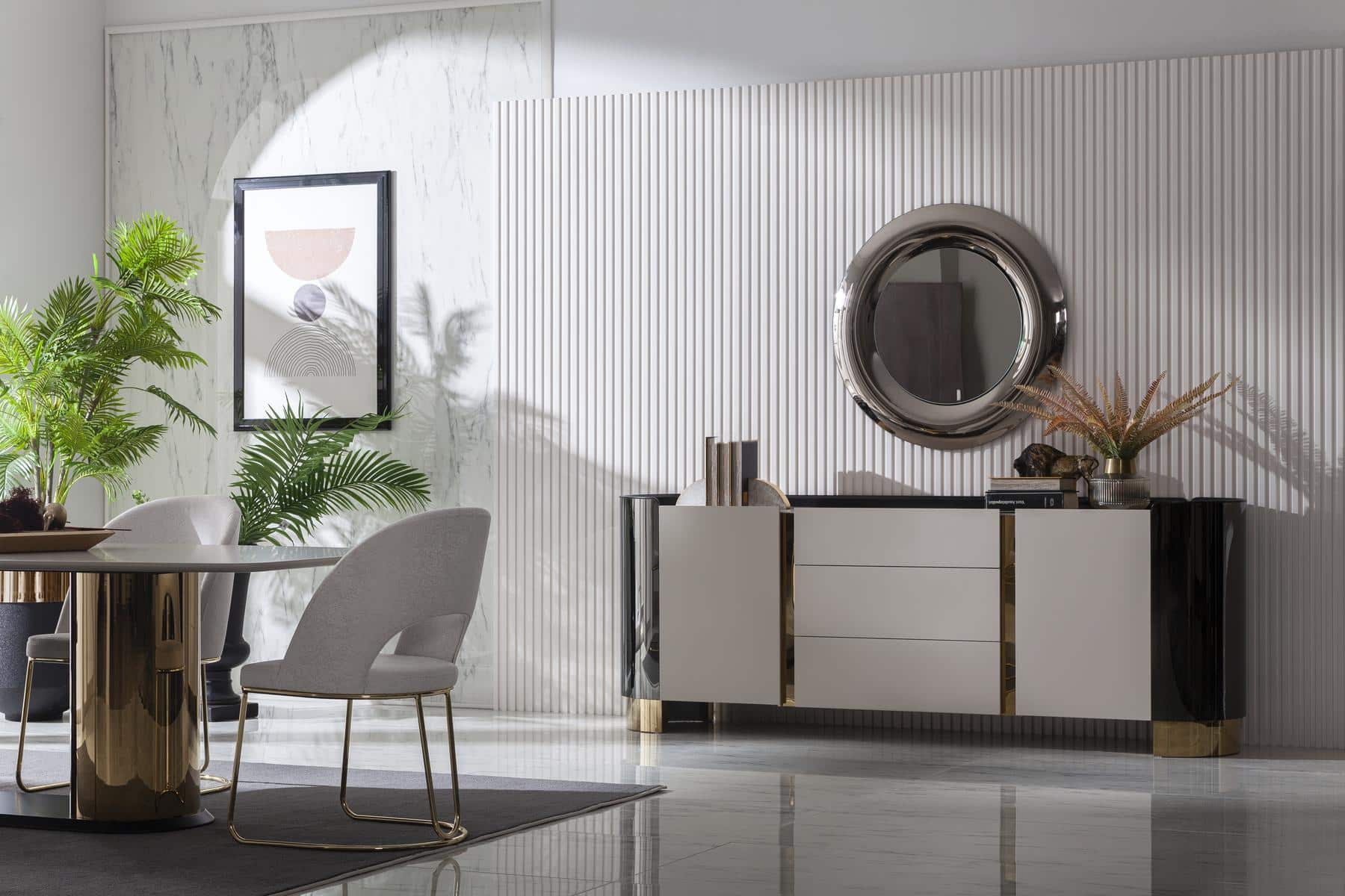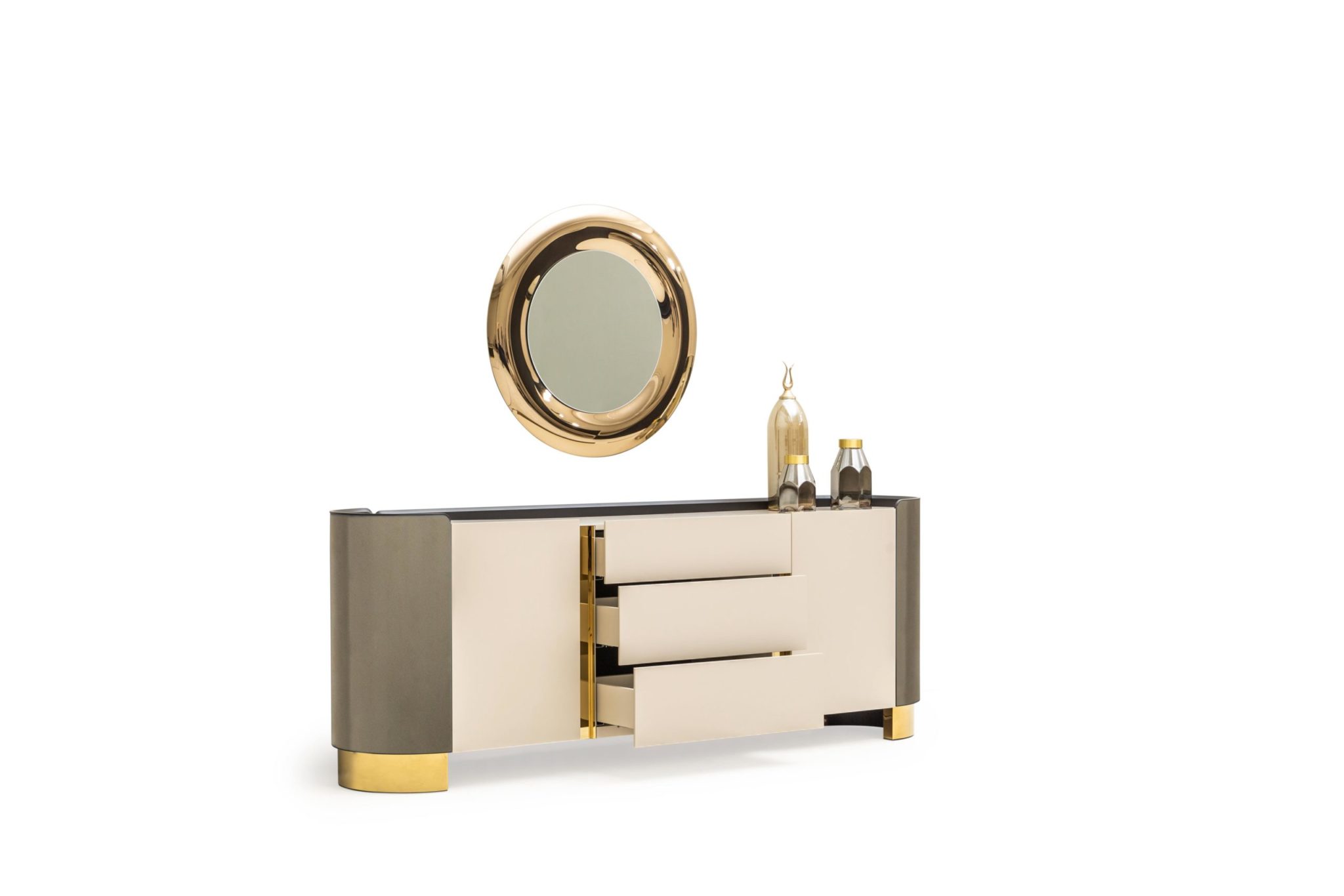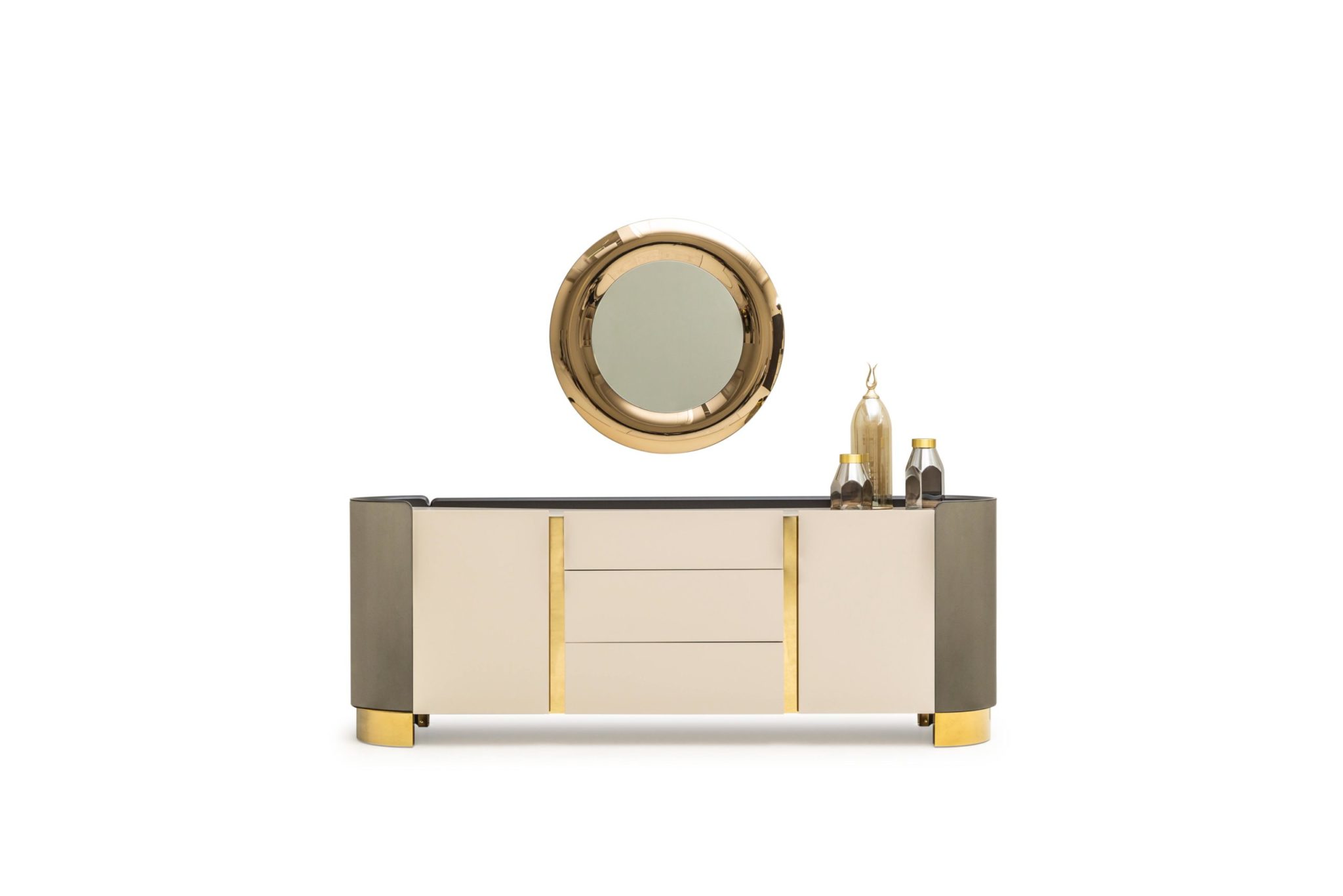 Octo tálalószekrény krém & arany & fekete színben.