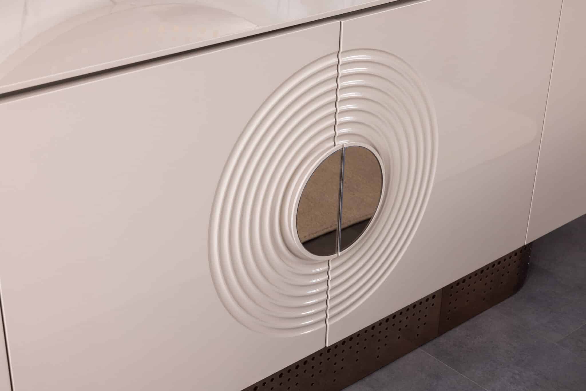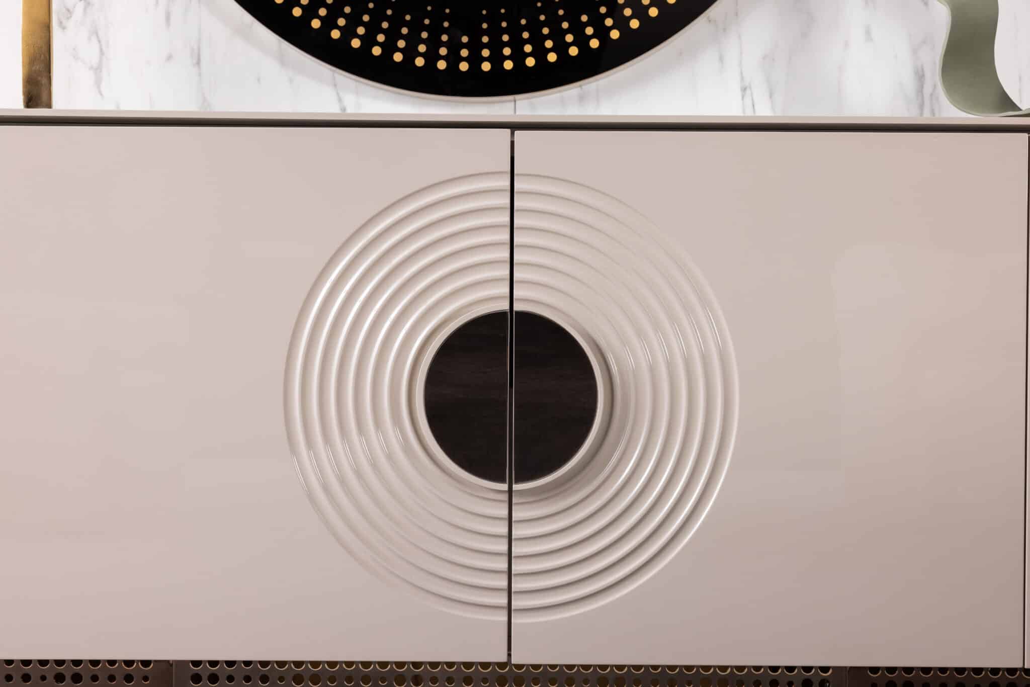 Panamera tálalószekrény magasfényű bézs felülettel. Beépített LED világítással.