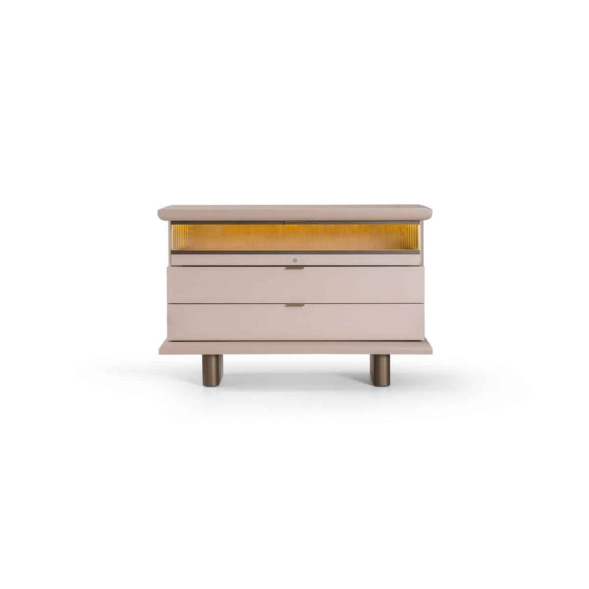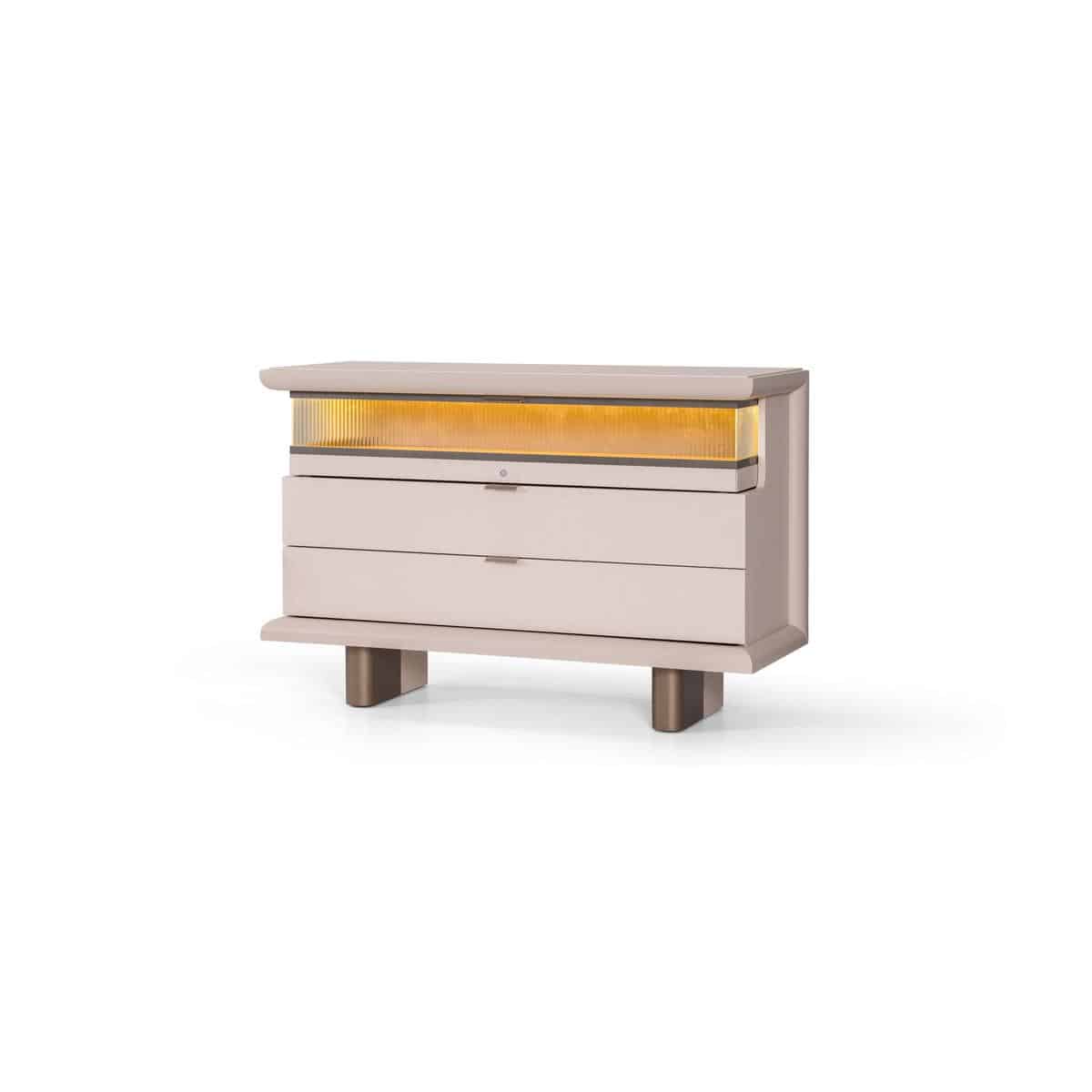 Sahara hálószoba családhoz tartozó dreser tejeskévé színben bronz lábakon.