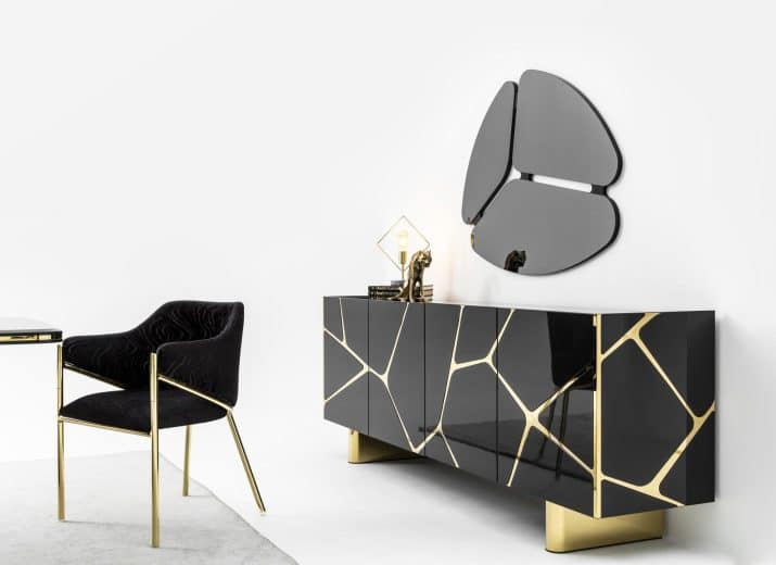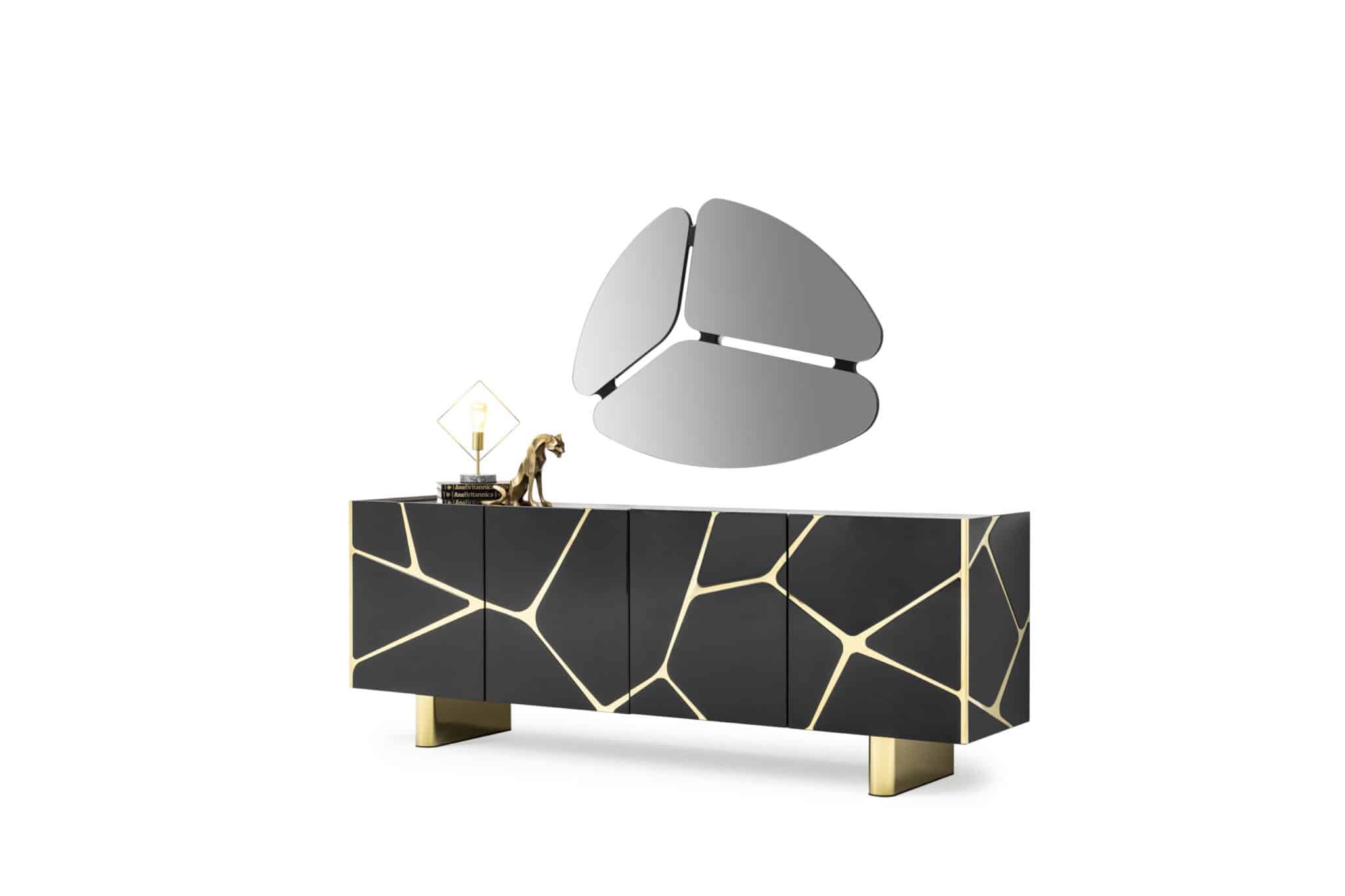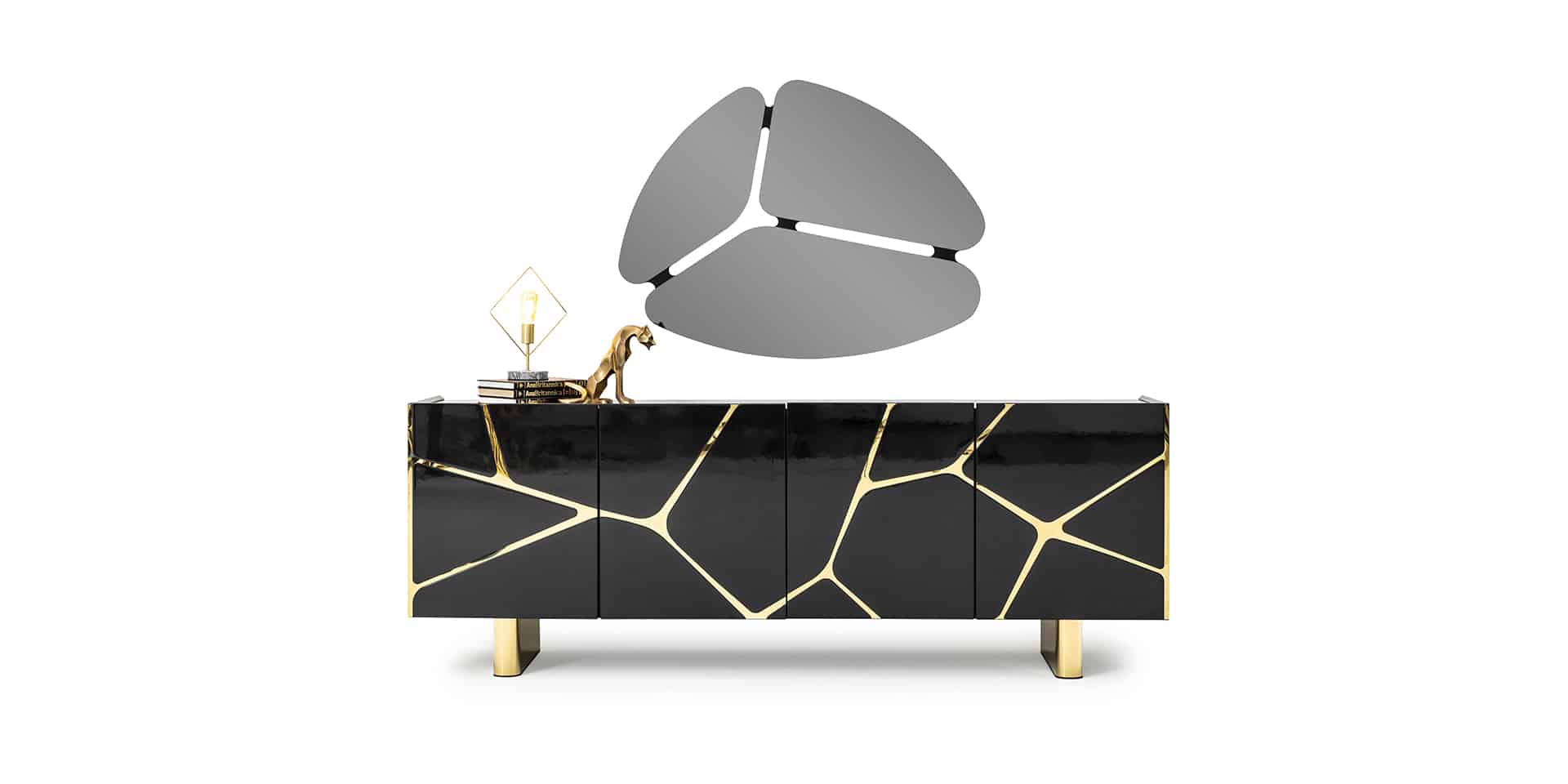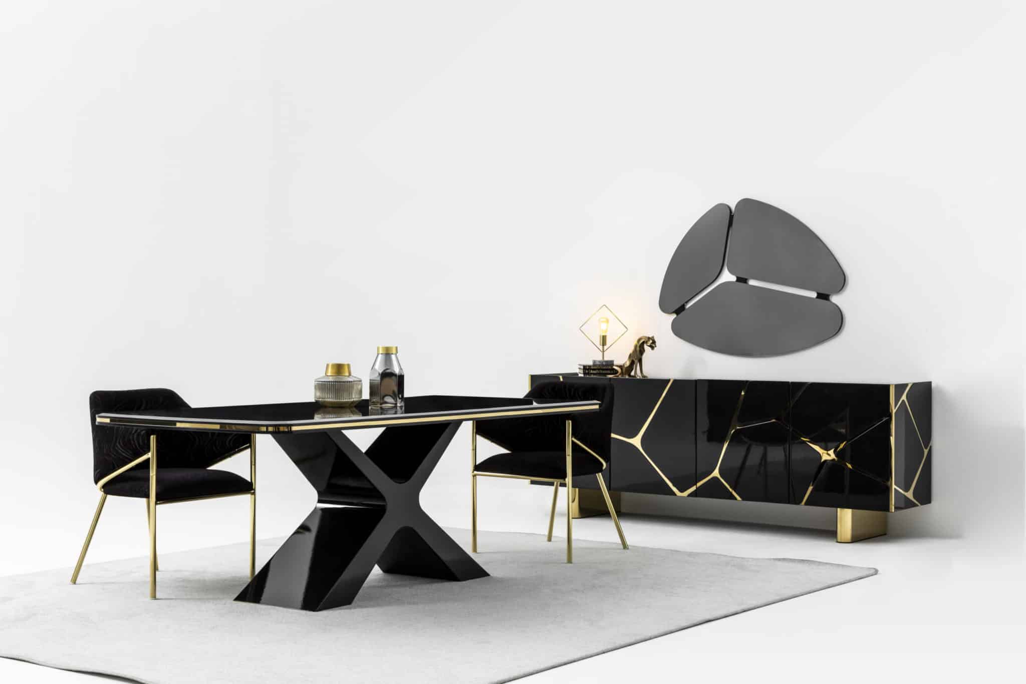 Kezdőlap Webshop Bútorok Szekrény, komód Komód Sirius tálalószekrény , fekete és arany
