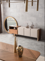 Lorenzo komód , tálalószekrény – tejeskávé és bronz színben