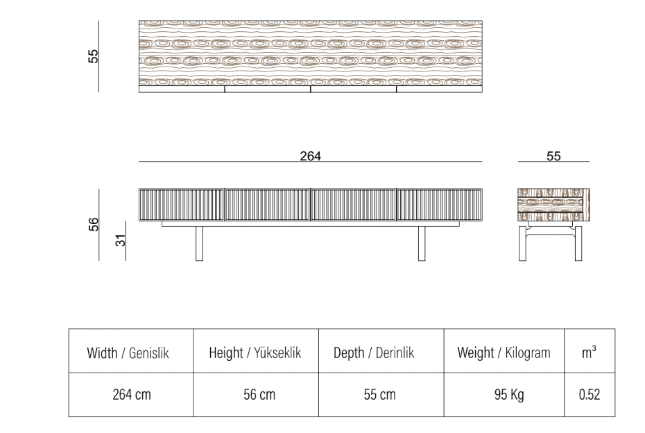 Szélesség: 264 cm