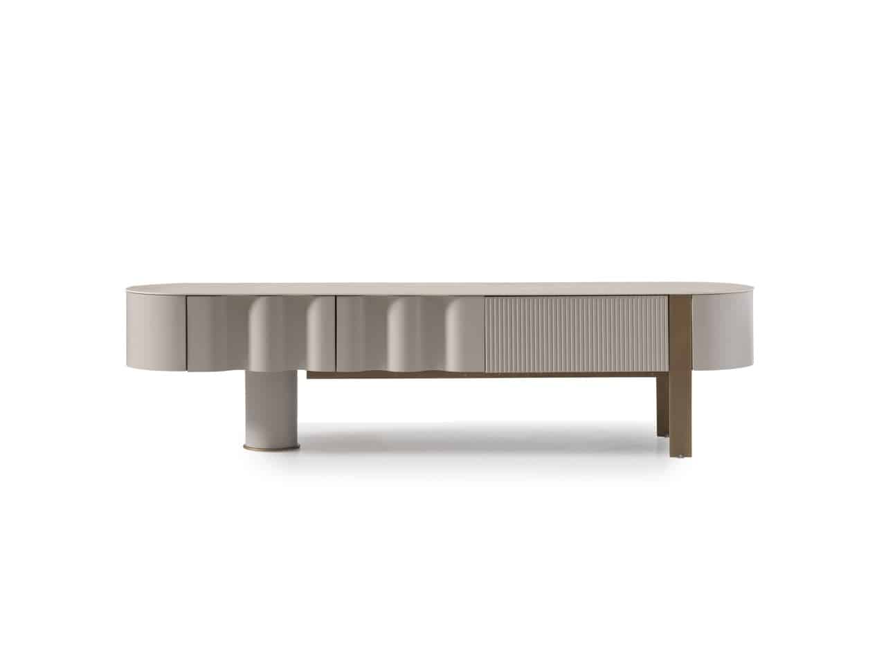 Portolima TV szekrény, bézs, mintázott fedlappal, szálcsiszolt arany berakással.