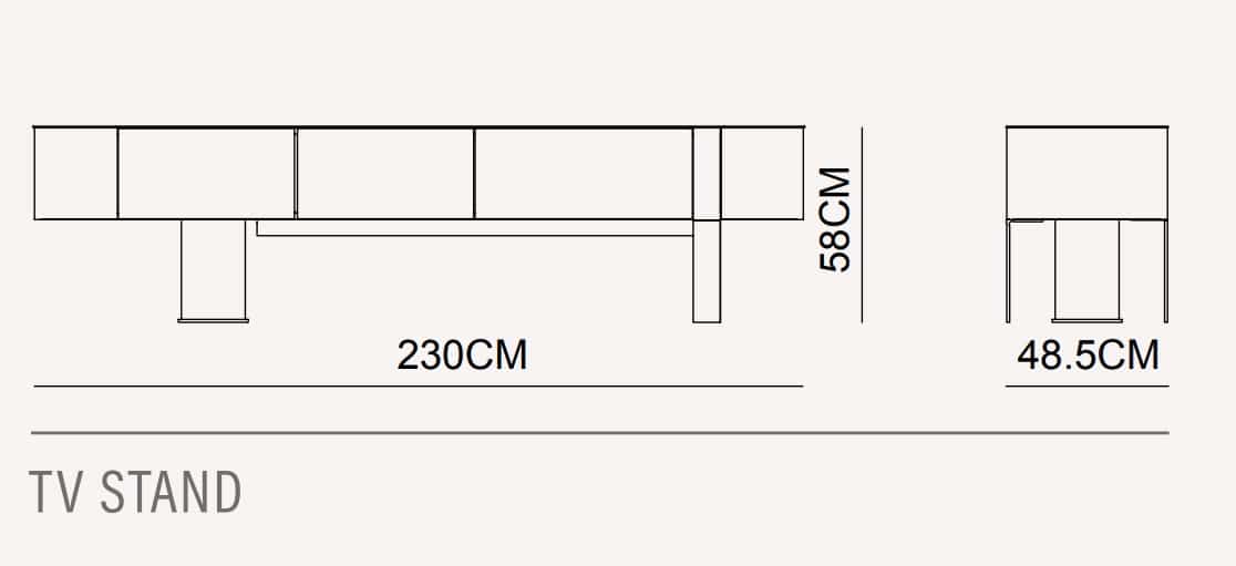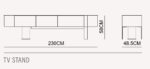 Méretek (szélesség x magasság x mélység): 230 x 58 x 48,5 cm