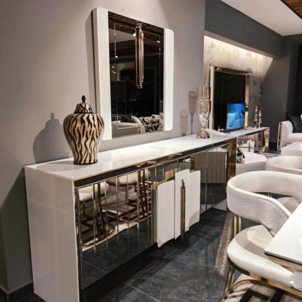 Asus komód / tálaló – fehér & ezüst (tükör nélkül)