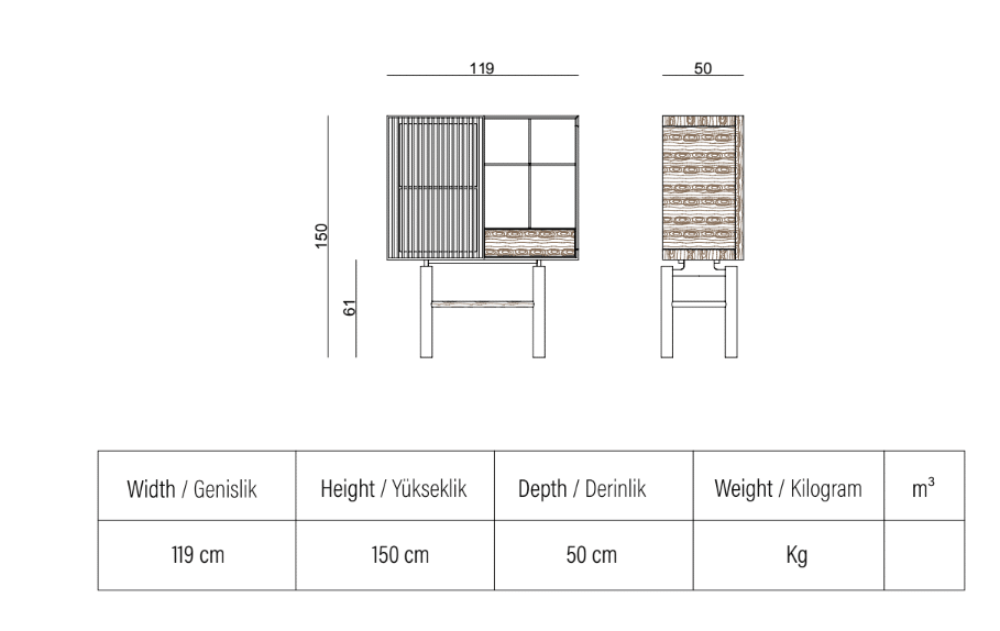 Szélesség: 119 cm