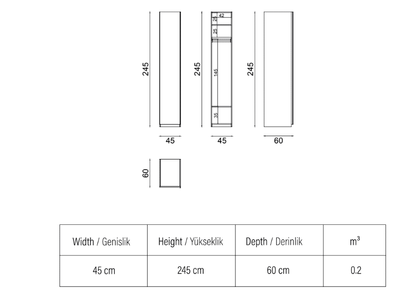 Magasság: 245 cm