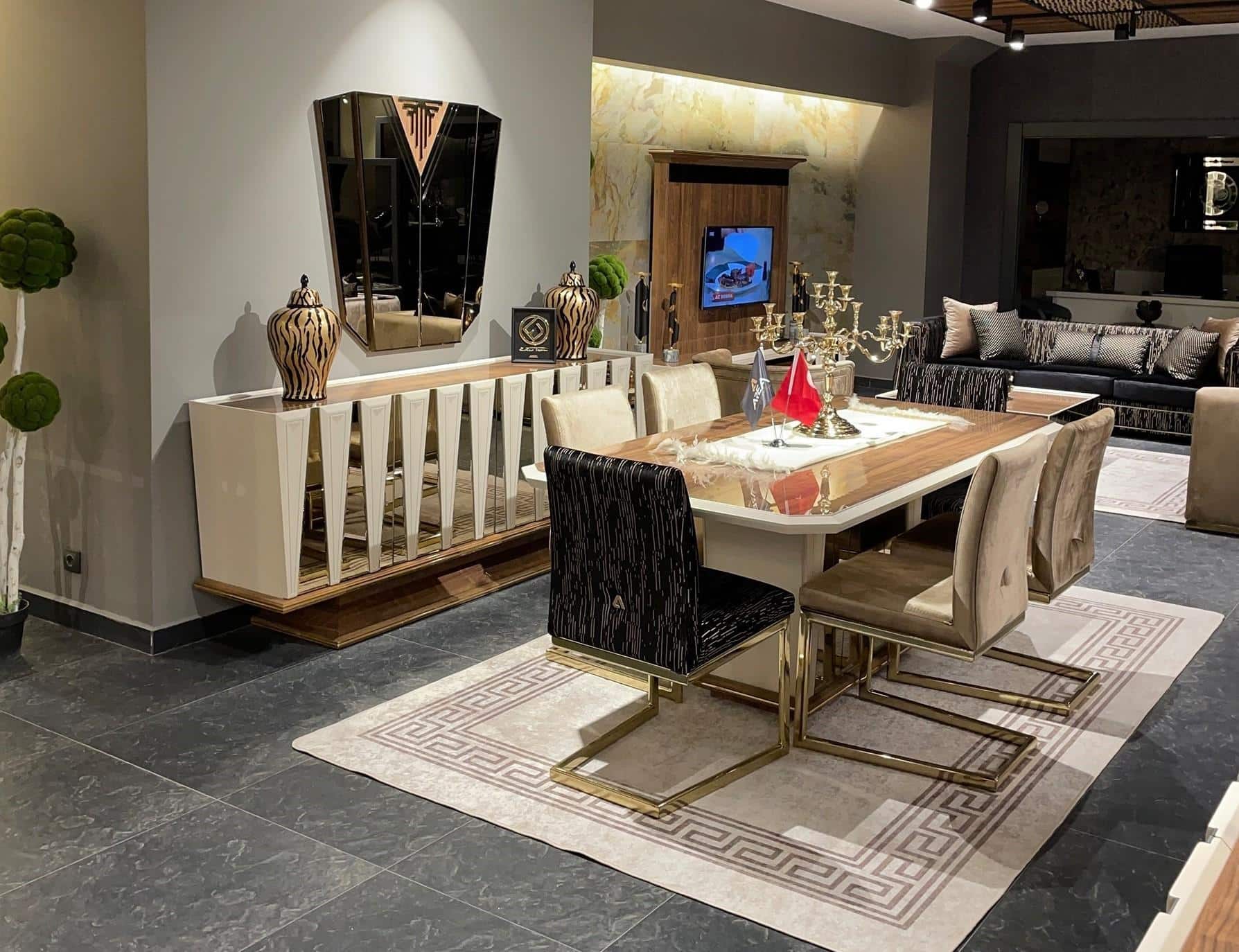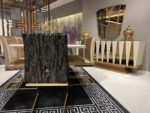 Glória étkezőasztal – arany & fehér, 211 cm