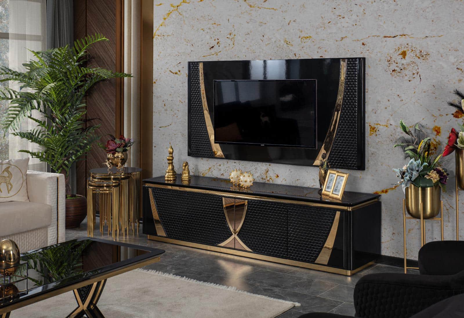 Kezdőlap Webshop Bútorok Szekrény, komód Lexus Tv falpanel- fekete & arany