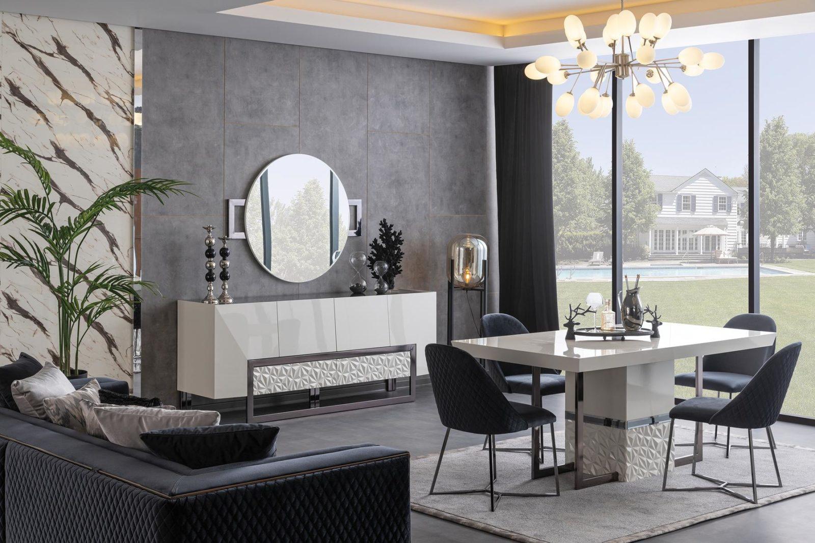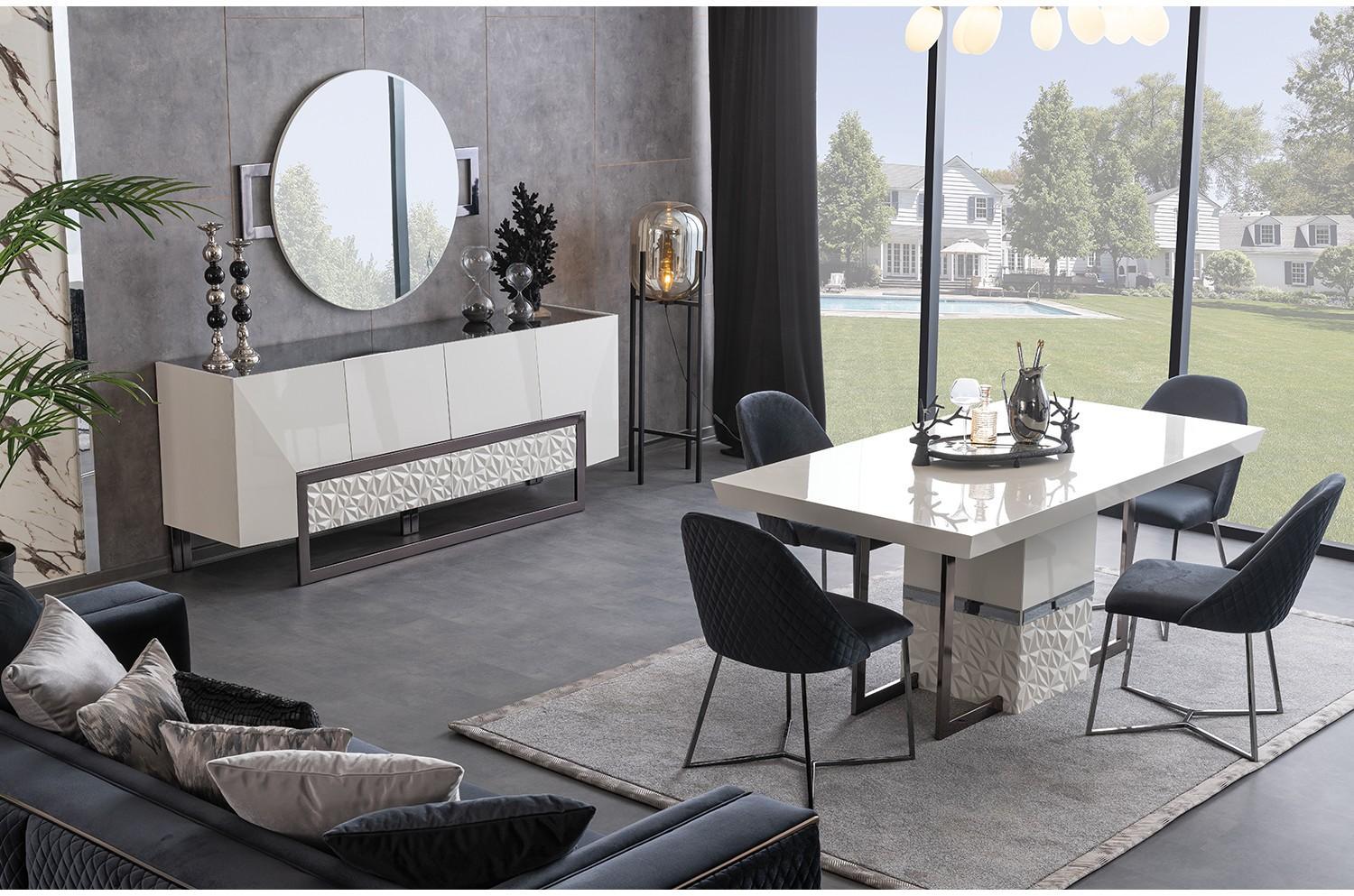 Valentino étkezőasztal – fehér & króm, 185 cm