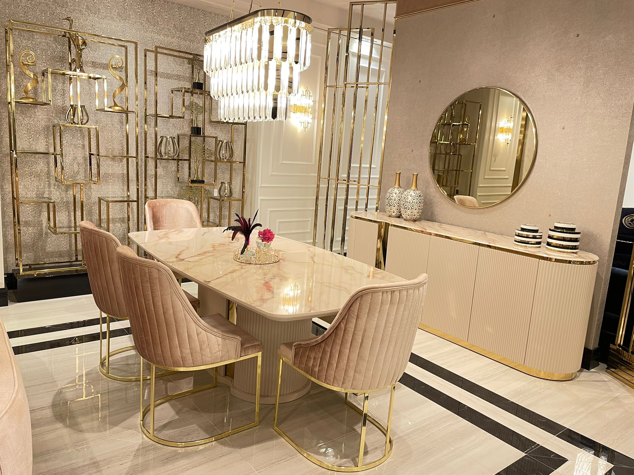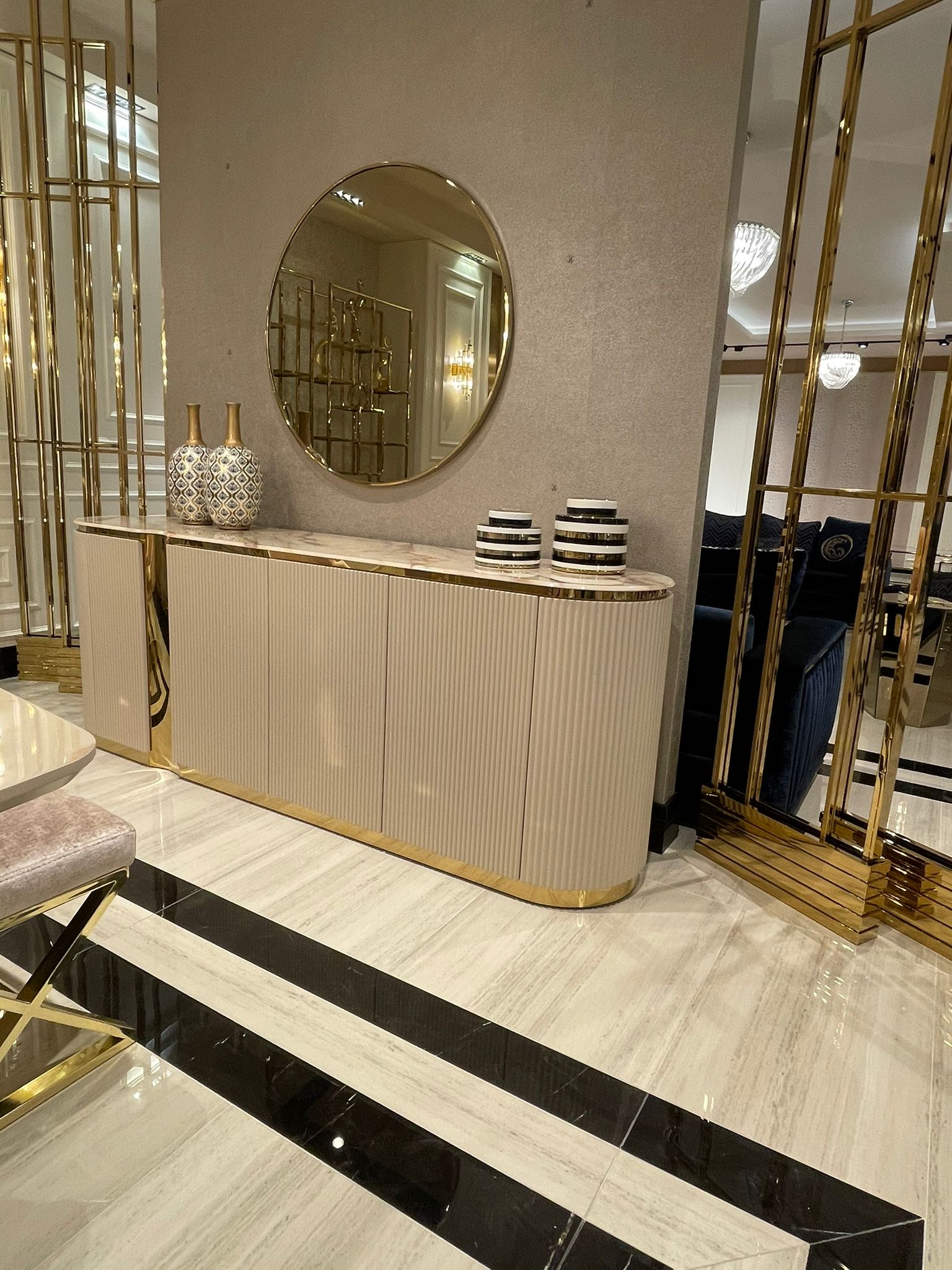 Vonya tálalószekrény vagy komód krém & arany színben.