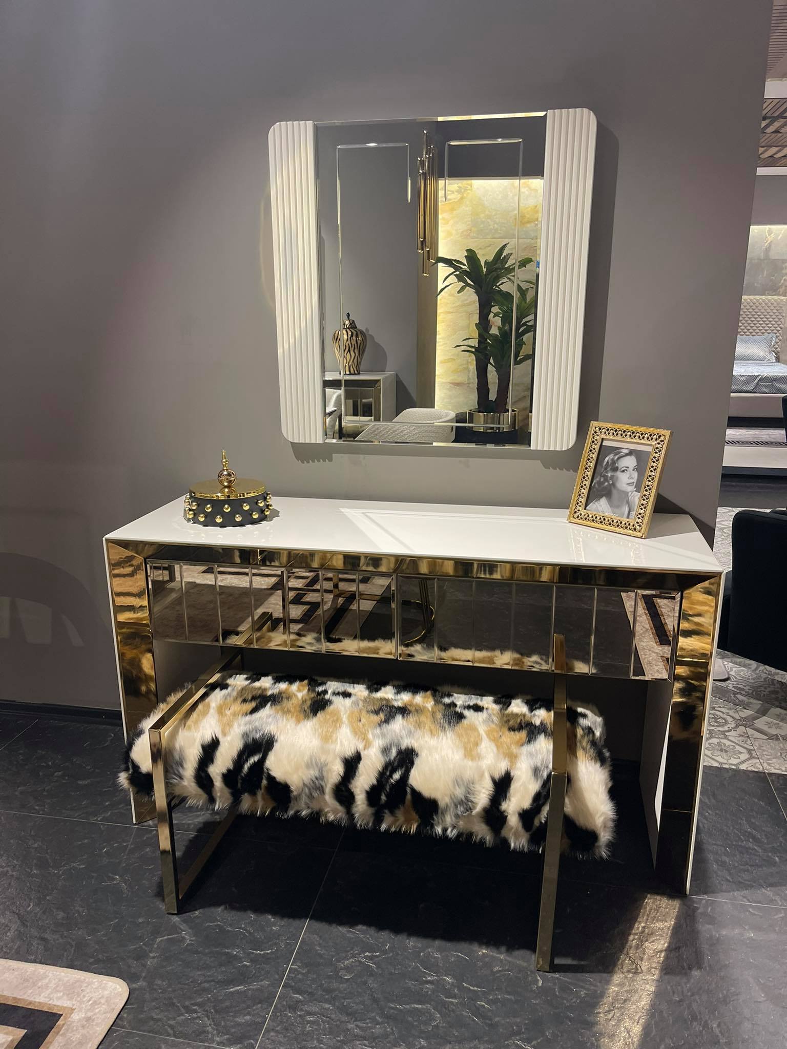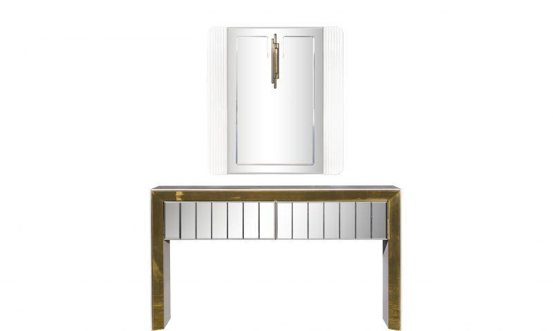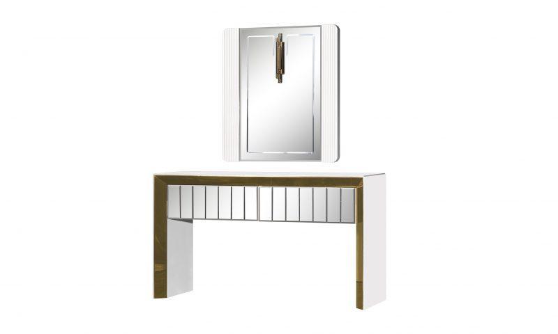 Vegas konzolasztal / fésülködő asztal – arany & fehér & tükör