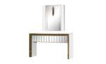 Vegas konzolasztal vagy fésülködőasztal  magasfényű fehér a felülete &  arany és tükör lap dekorációval, tükörrel