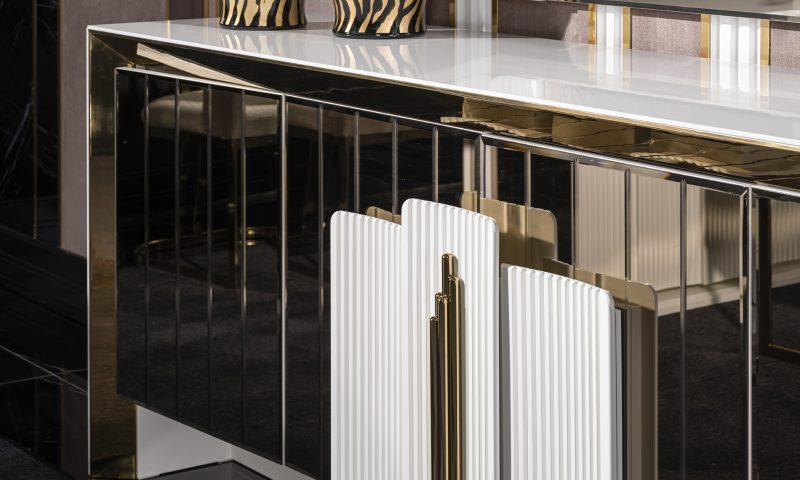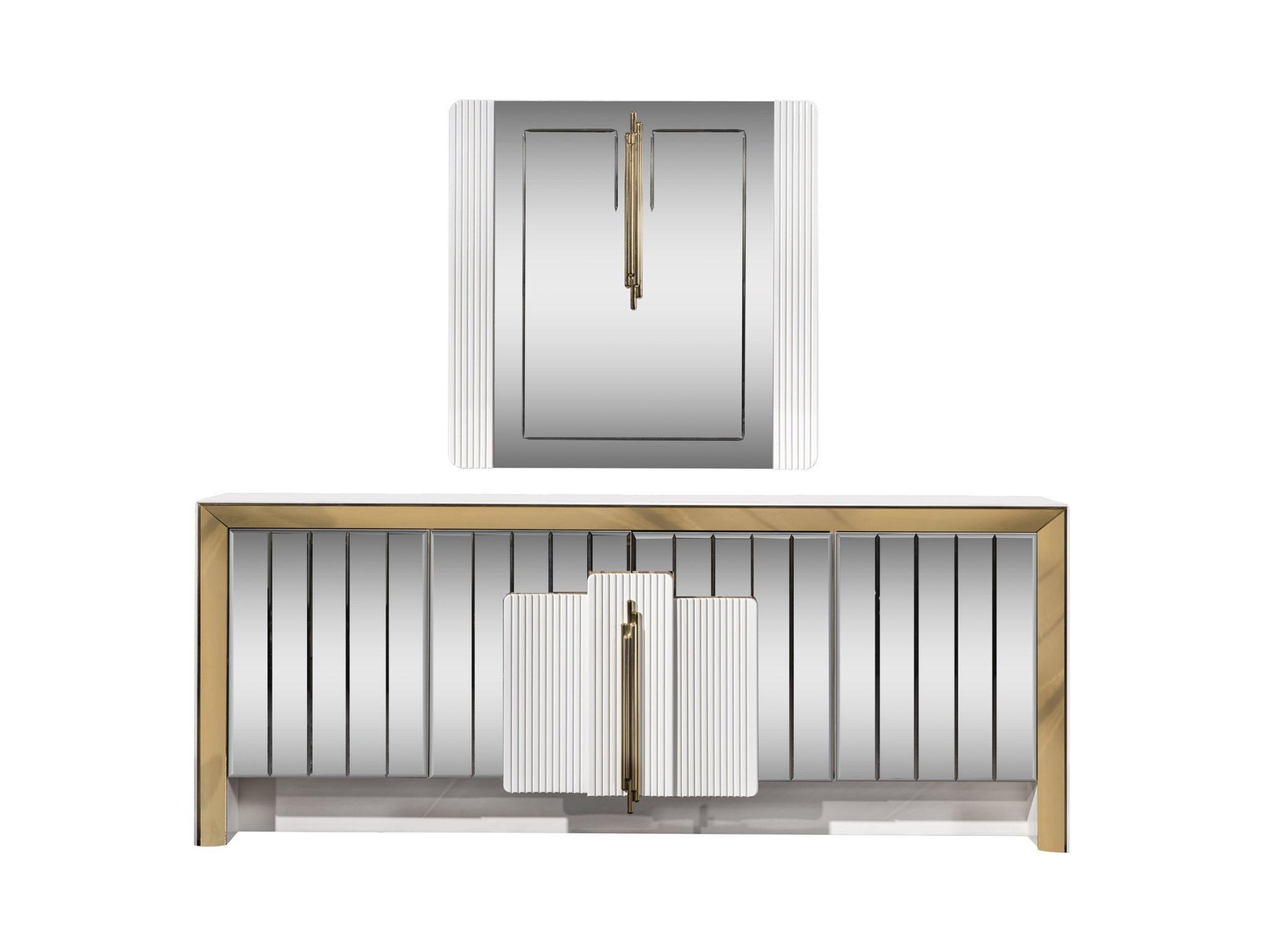 Kezdőlap Webshop Bútorok Szekrény, komód Komód Vegas tálalószekrény – arany & tükör & fehér