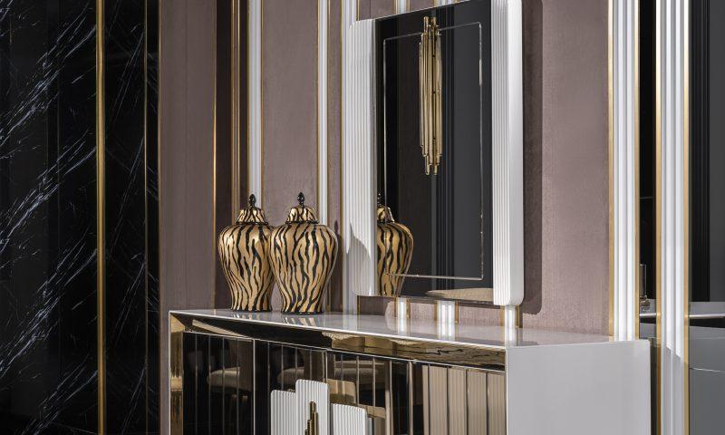 Vegas konzolasztal / fésülködő asztal – arany & fehér & tükör