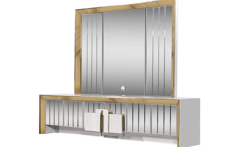 Vegas konzolasztal / fésülködő asztal – arany & fehér & tükör