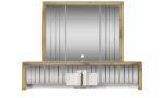 Az alsó modul mérete: 245 cm széles, 60 cm cm magas, 50 cm mély. A felső modul: 177 cm széles, 130 cm magas, 9 cm mély. A teljes méret: 245 cm x 190 cm x 50 cm.