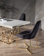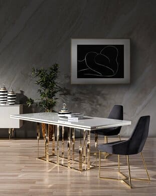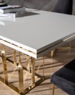 Zen étkezőasztal magasfényű fehér arany lábbakkal.