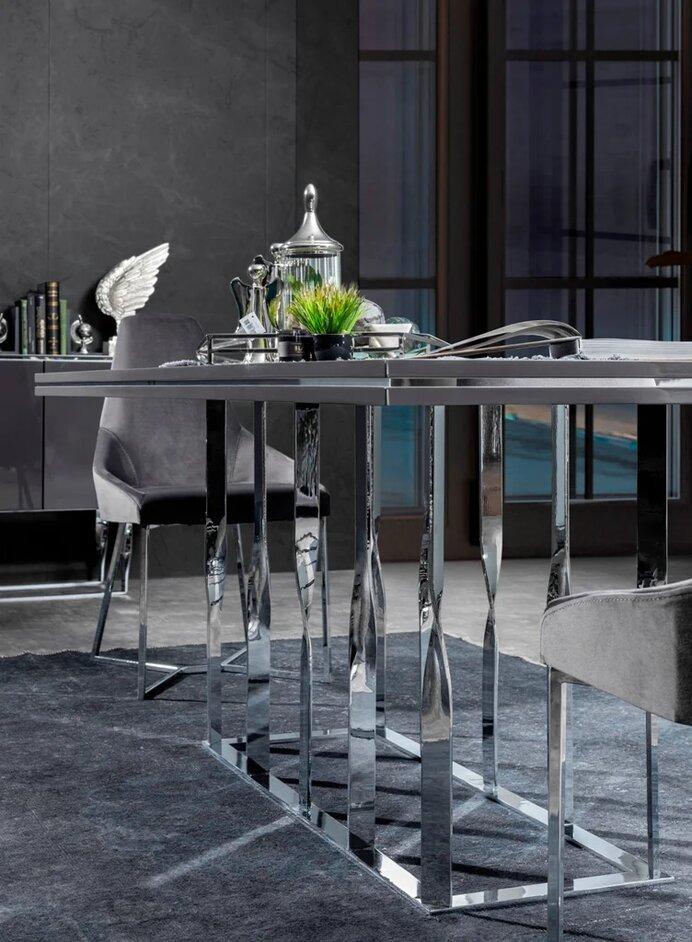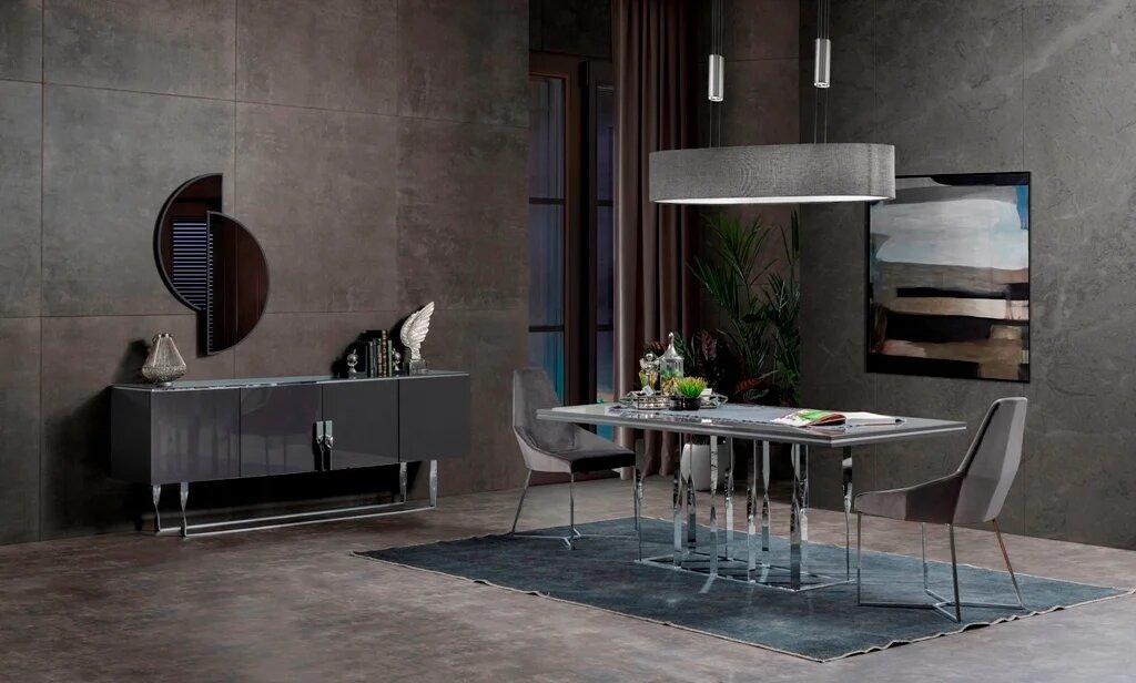 Zen étkezőasztal magasfényű szürke króm lábbakkal.