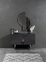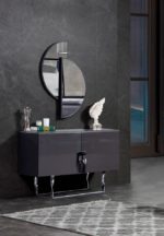 Zen magasfényű szürke fésülködő asztal vagy konzolasztal szürke lábakkal. Fésülködő asztalhoz tükör tartozik.